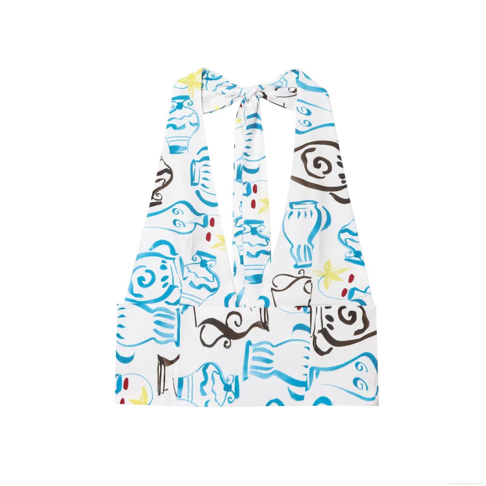• Elegant Women Halter Crop Top Or High Waist Midi Skirt Set Abstract Pottery Print Backless Tie-Up Summer Vacation Polyester Cotton Blend Street Style Outfits