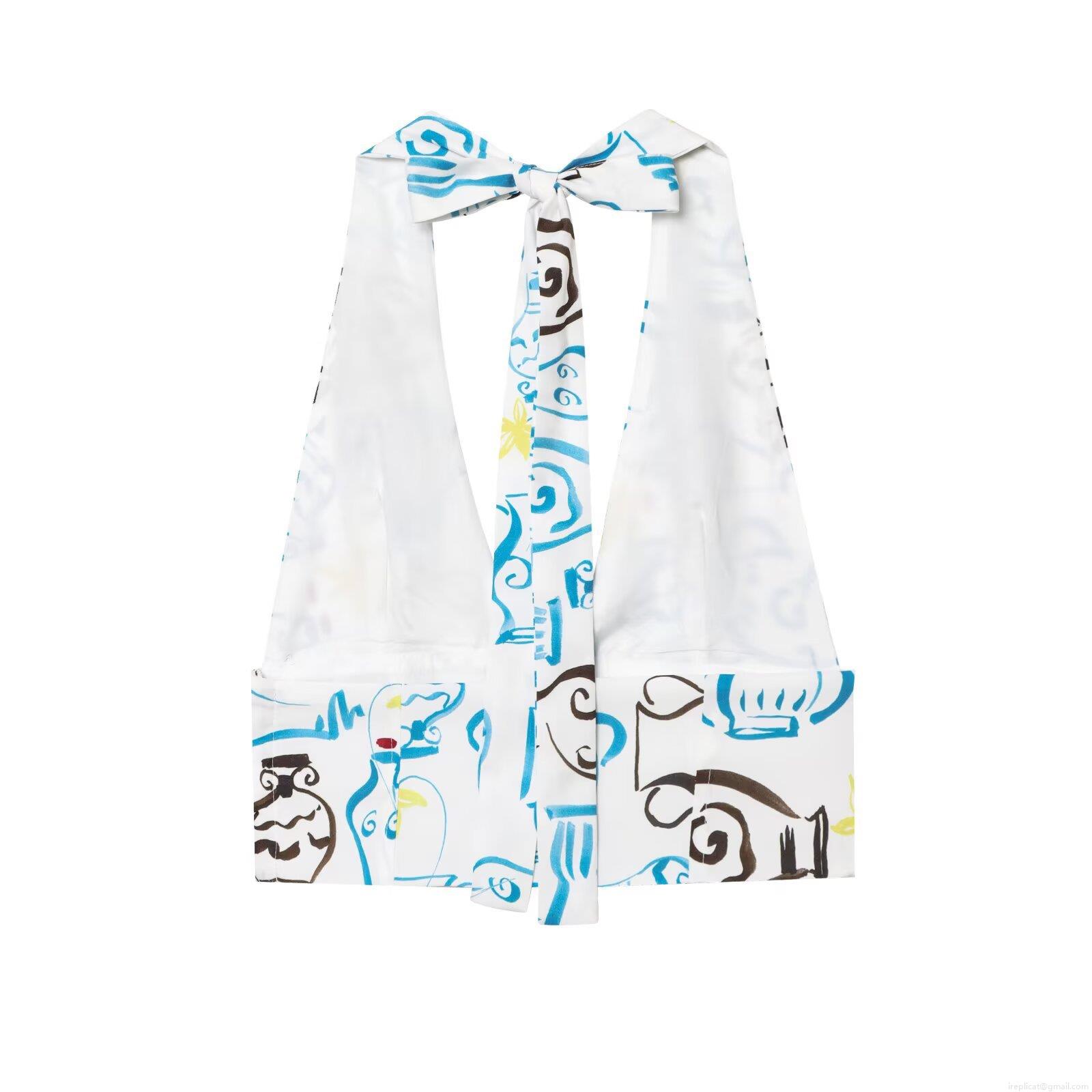 Elegant Women Halter Crop Top Or High Waist Midi Skirt Set Abstract Pottery Print Backless Tie-Up Summer Vacation Polyester Cotton Blend Street Style Outfits