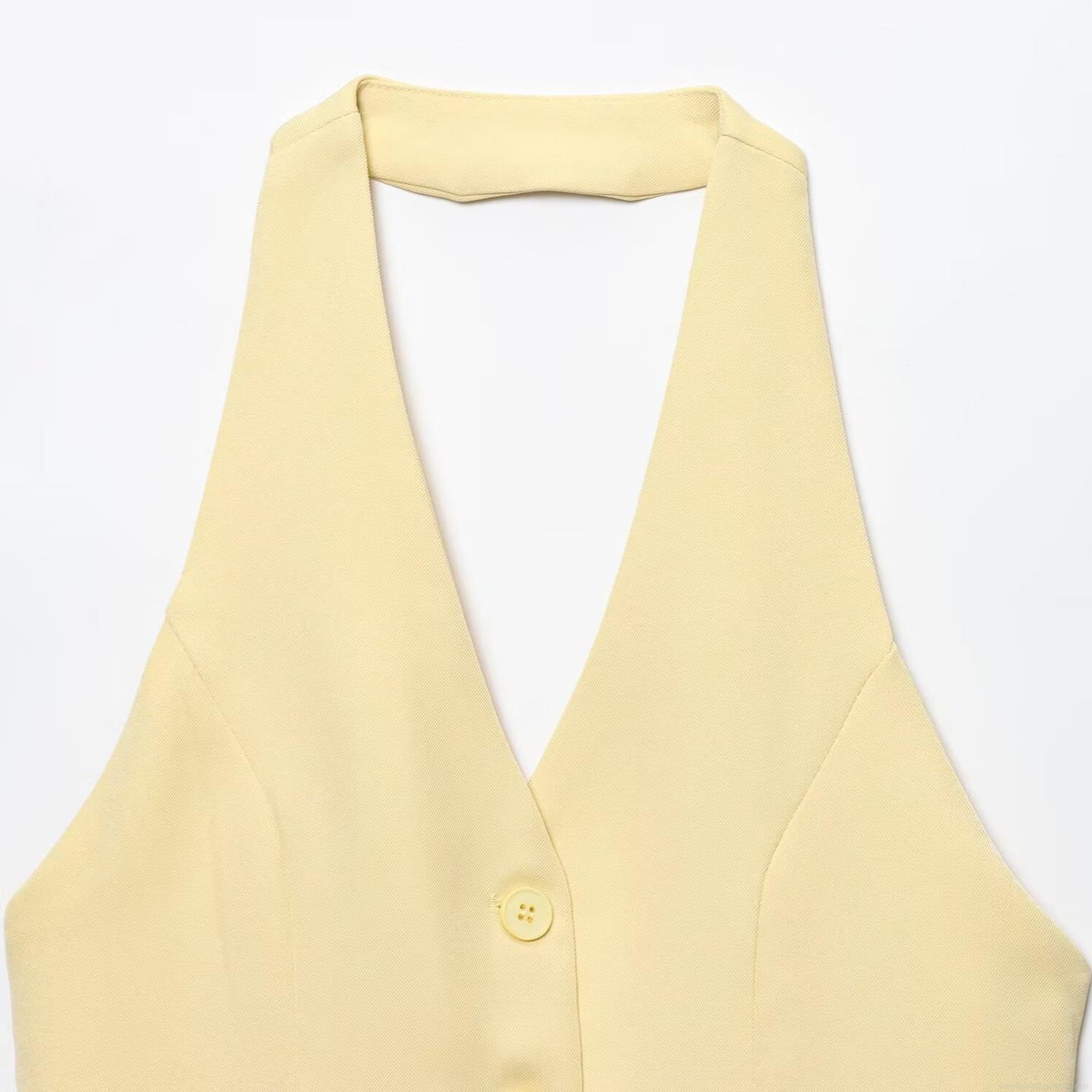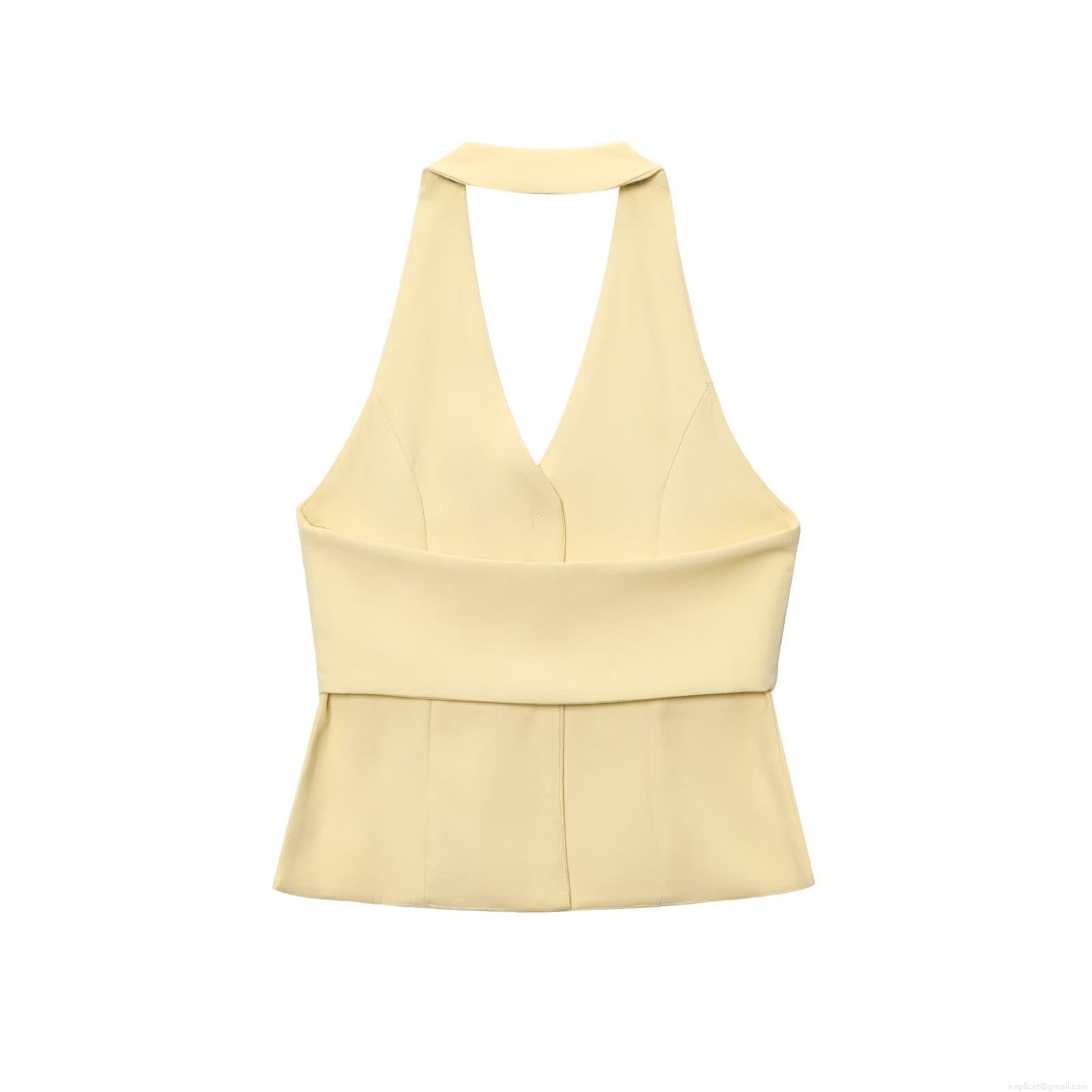 Myst-Za Women Summer Fashion Backless Halter Vest Top And High Waisted Wide Leg Pants Two Piece Set Polyester Spandex Solid Color Commuter Elegant Sleeveless Outfit For Women