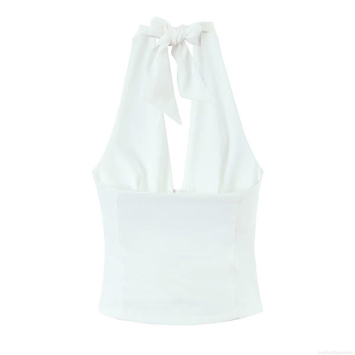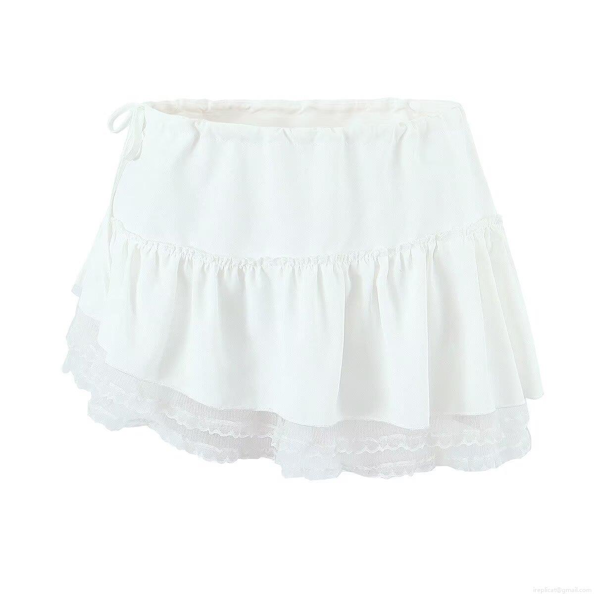 • Sexy White Polyester Lace Trim Halter Neck Backless Button Vest And Ruffle Mini Skirt Two Piece Set Women Summer Streetwear Outfit