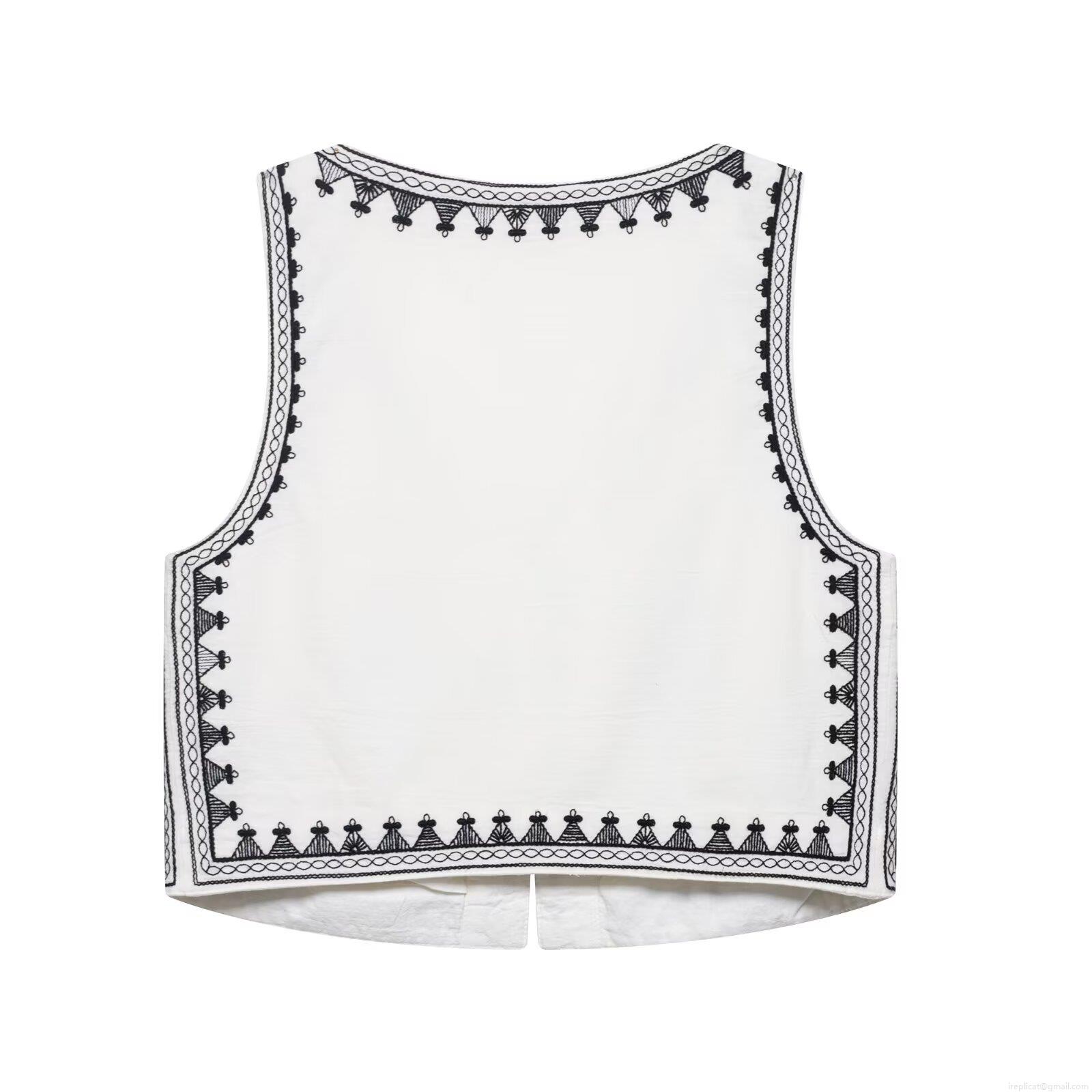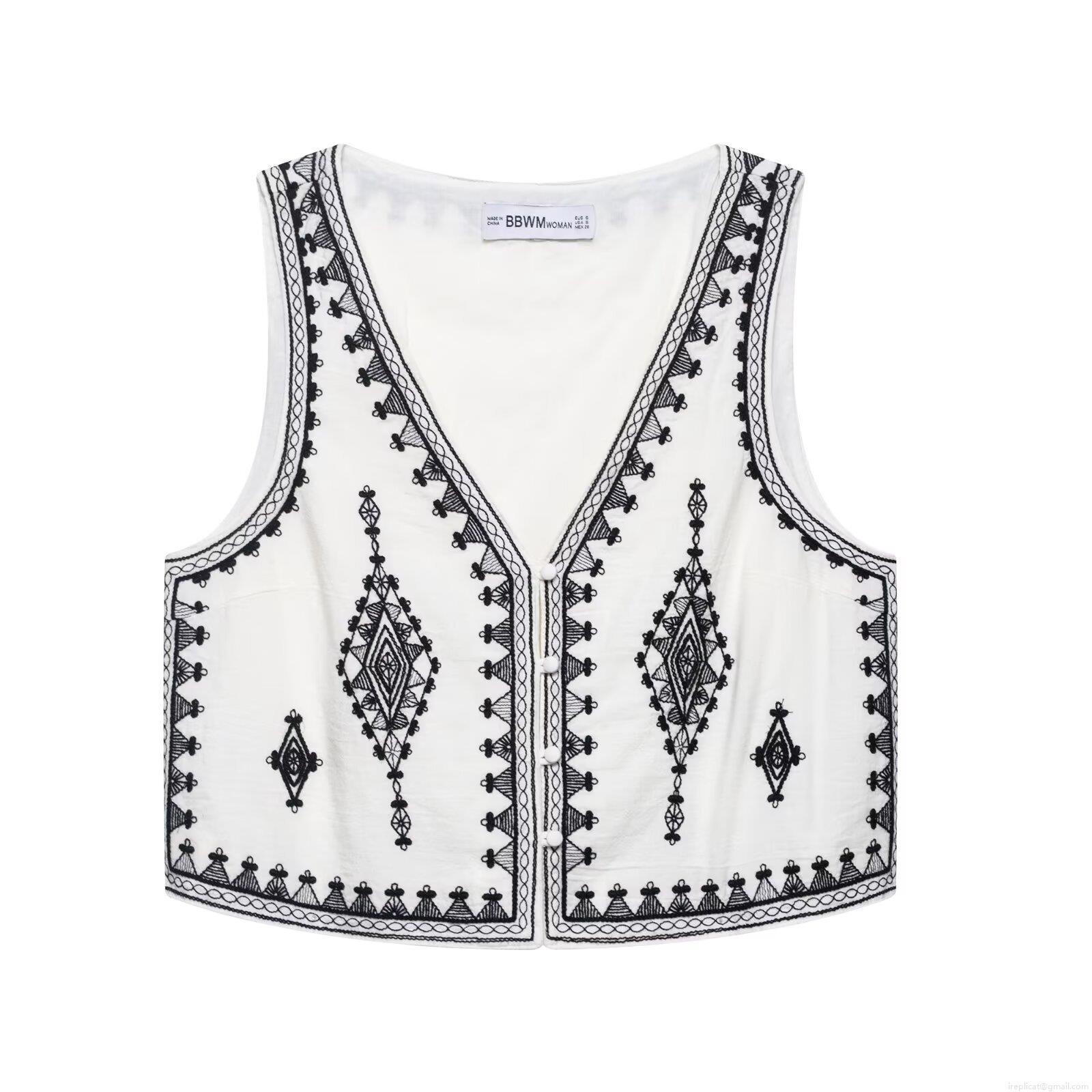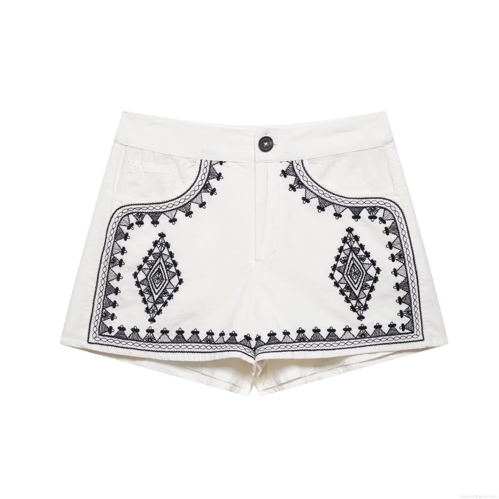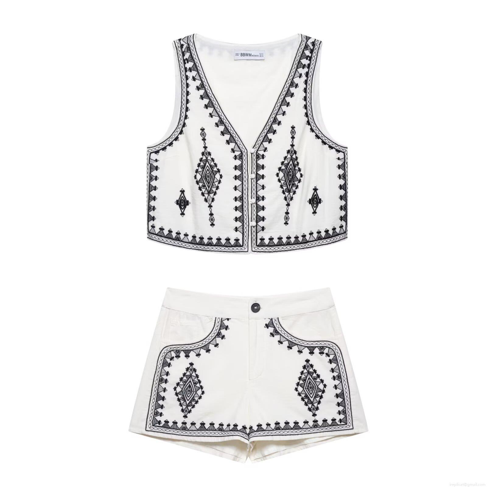 • Women Bohemian Embroidery White Two Piece Set V Neck Sleeveless Vest And High Waist Shorts Ethnic Geometric Pattern Summer Beach Casual Outfit