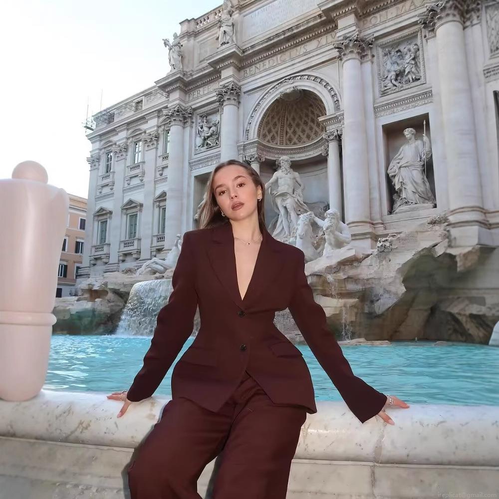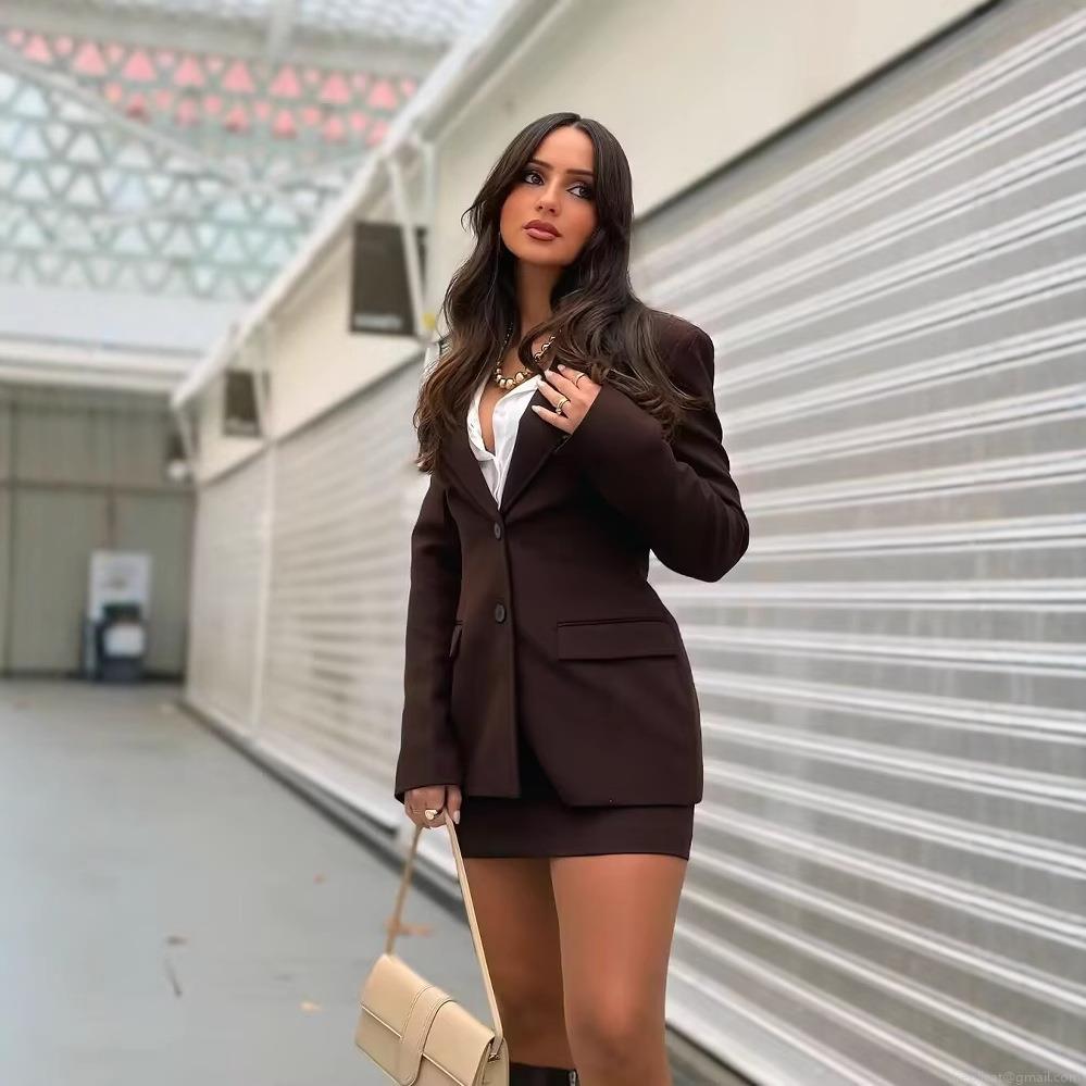 • Women Business Suit Set Polyester Slim Fit Single Breasted Blazer Mini Skirt And High Waist Straight Leg Trousers Professional 3 Piece Office Workwear Career Outfit For Women Coffee Brown