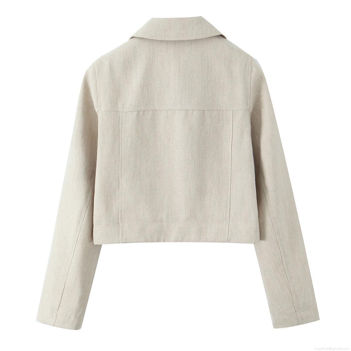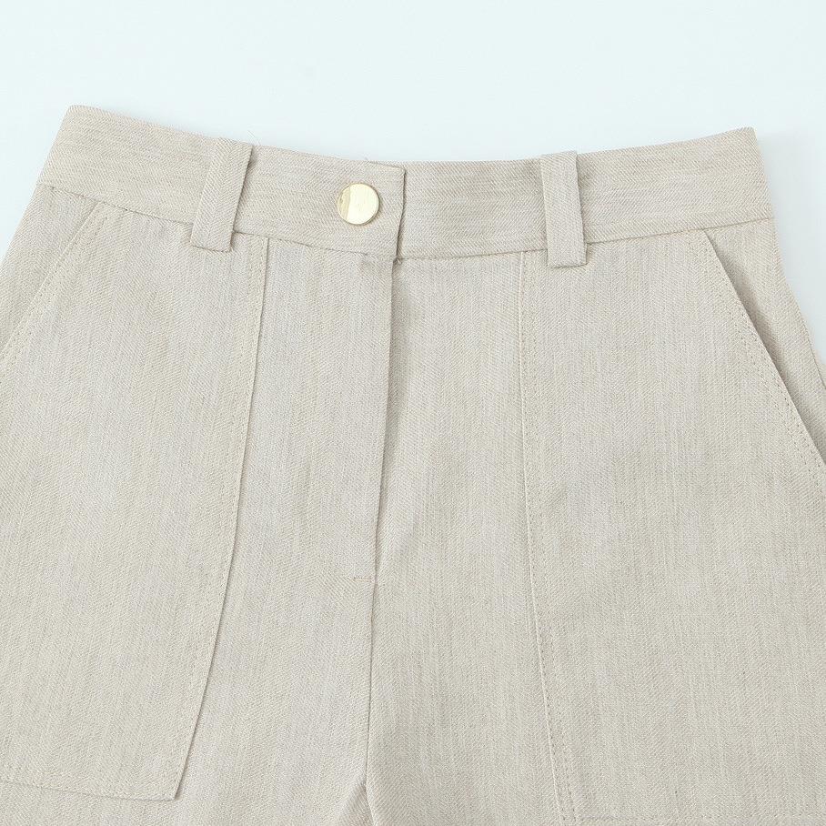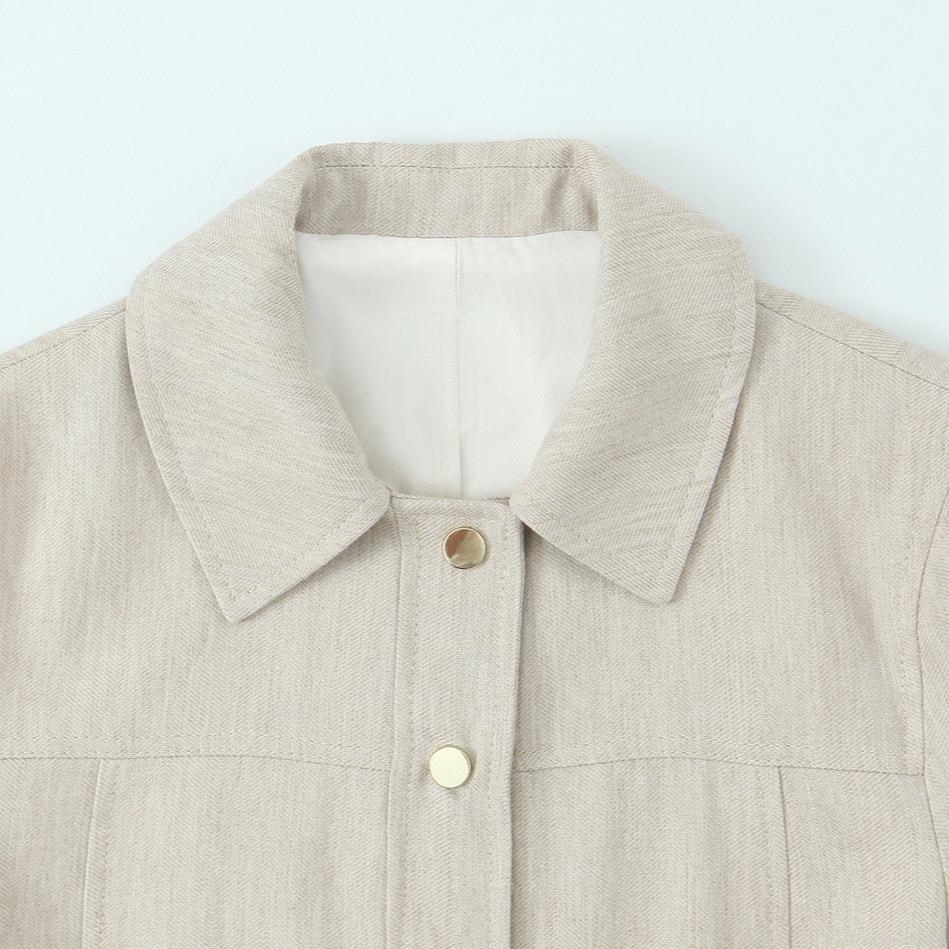 • Women Casual Two Piece Set Oatmeal Short Lapel Jacket and High Waist Straight Wide Leg Pants Cotton Linen Texture Woven Suit for Daily Commuting Autumn