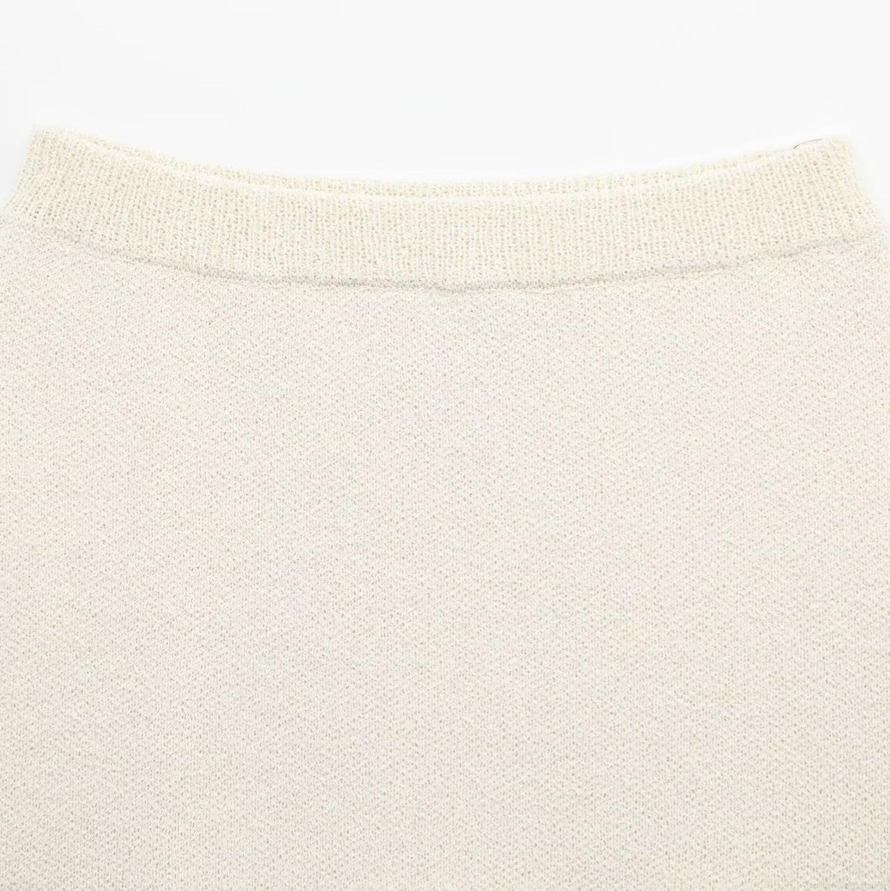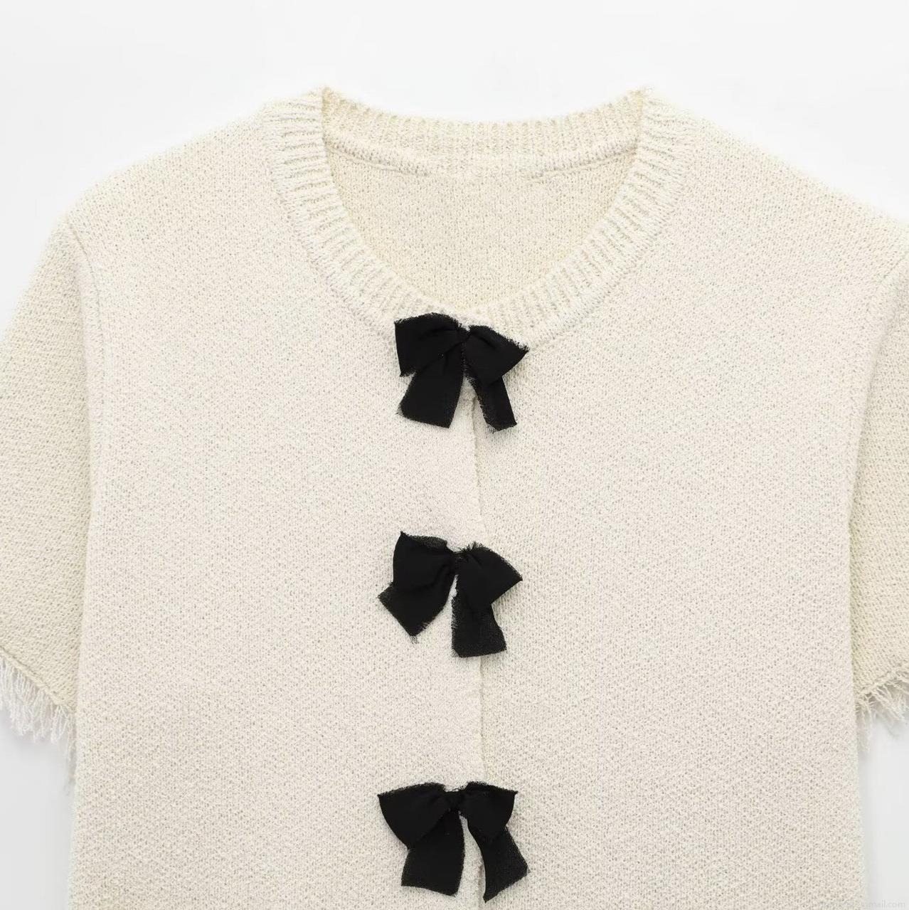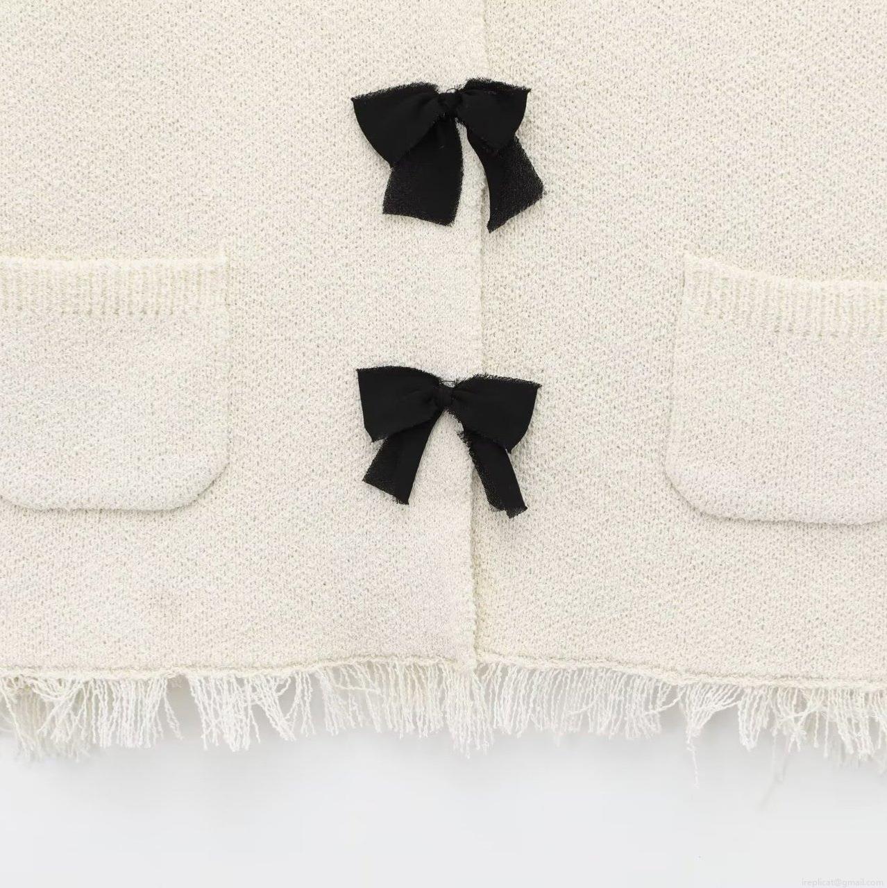 • Women Elegant Knit Two Piece Skirt Set Short Sleeve Bow Cardigan And Mini Tassel Skirt Cream White Chanel Style For Party Commute Women Outfits
