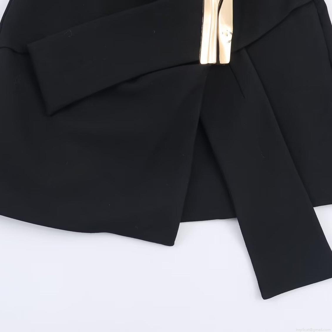 Solid Color, Waist Tie, Asymmetrical Cut, Metal Irregular Buckle, Single Fork