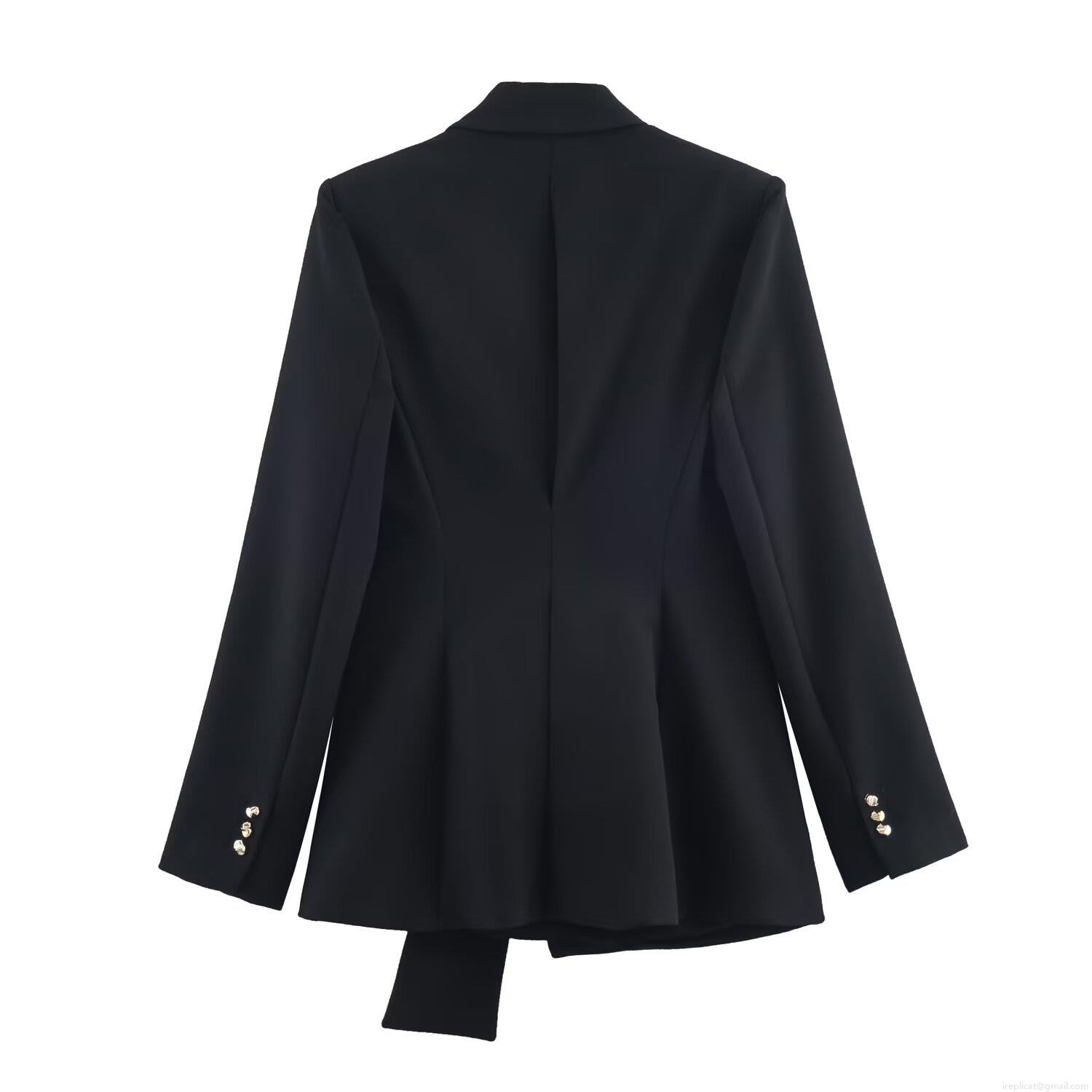 • Women Fashion Asymmetric Buckle Blazer Jacket And High Waist Wide Leg Trousers Set Polyester Spandex Business Casual Office Lady Professional Suit