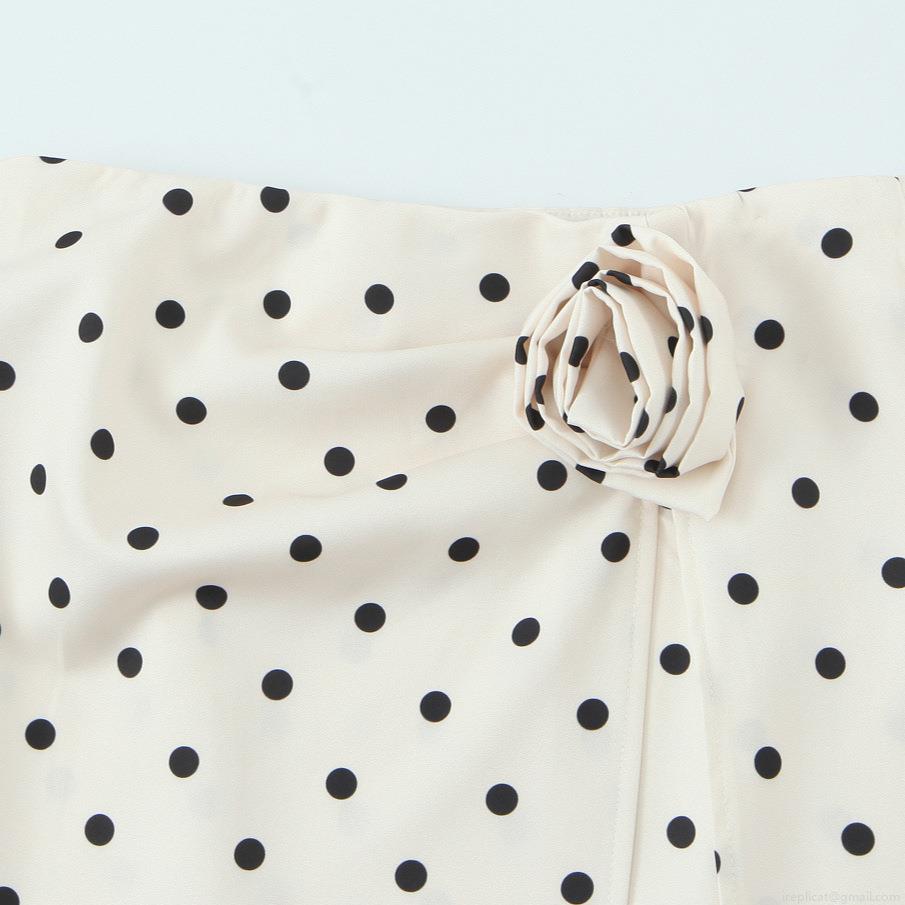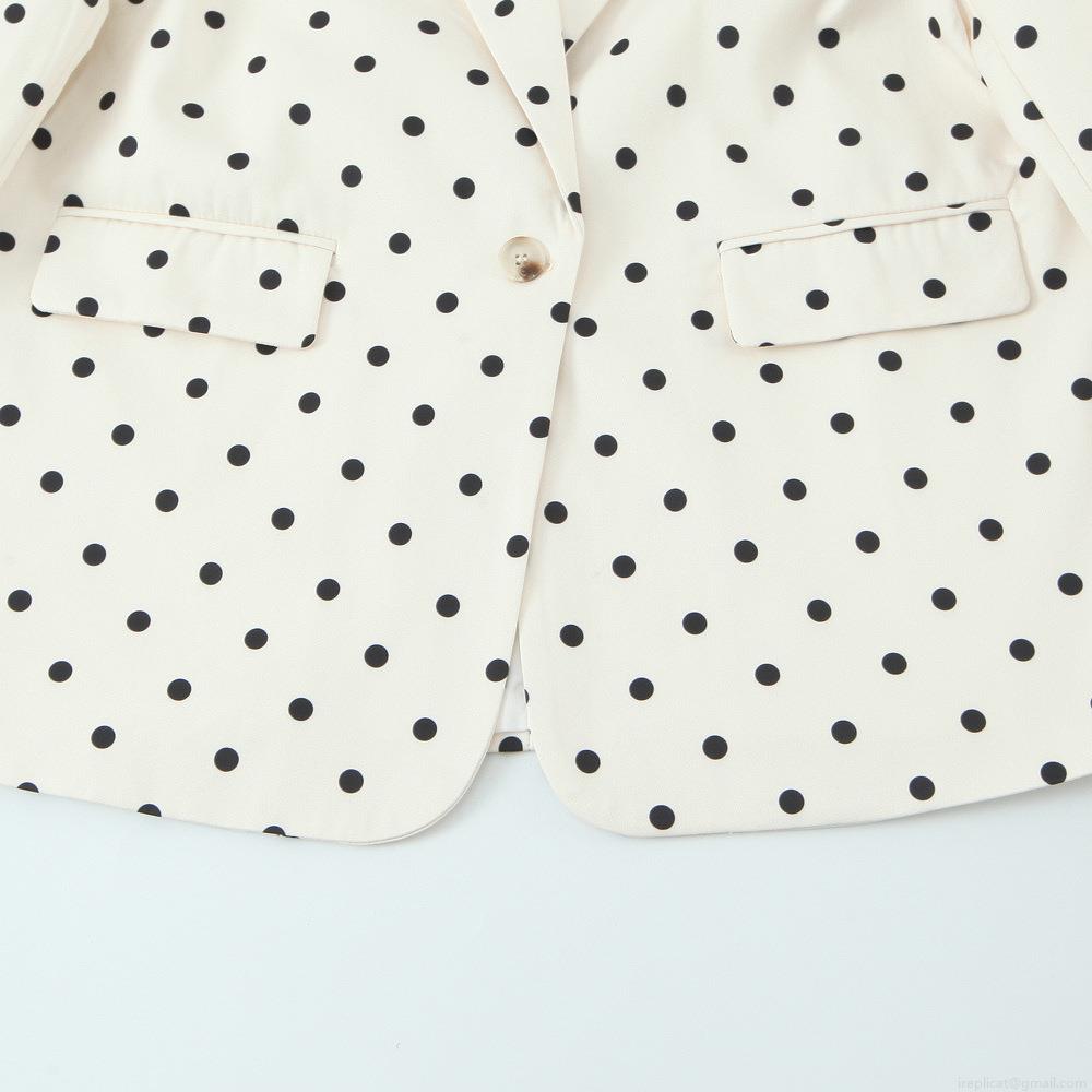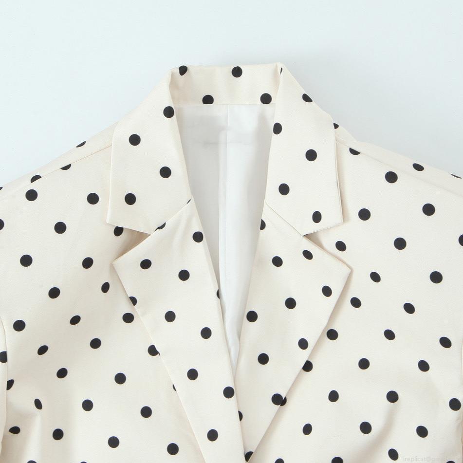 • Women Fashion Polka Dot Blazer And Irregular Skirt Set Polyester Spandex Broad Shoulder Two Piece Suit With 3D Flower And Streamer For Office Lady Elegant Casual Autumn Outfits