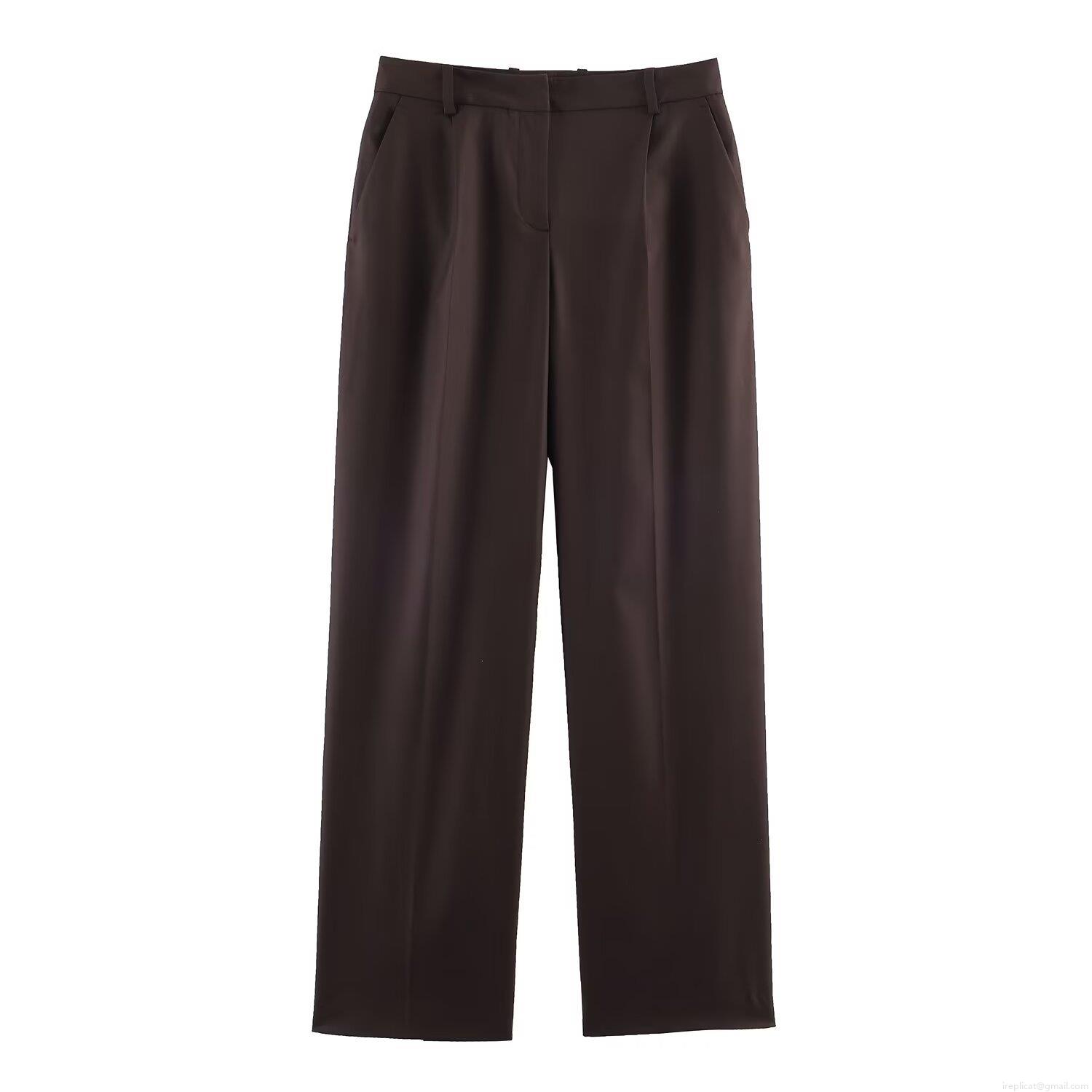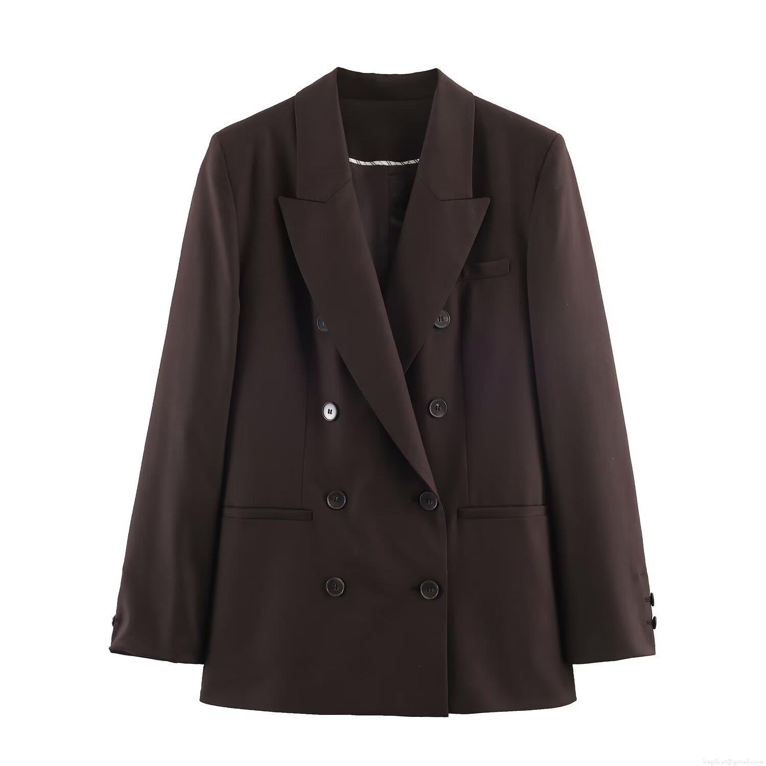 • Women Professional Coffee Dark Brown Blazer and Pants Suit Set with Shoulder Pads Office Lady Casual Streetwear Two Piece Outfit Polyester Suit