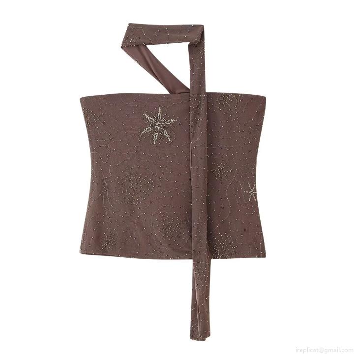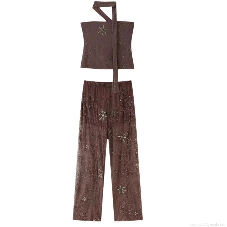 Line, Star, Hot Rhinestones, Wide-leg Pants, Mesh See-through, Sequin Embroidery, Halter Neck Strapless Top