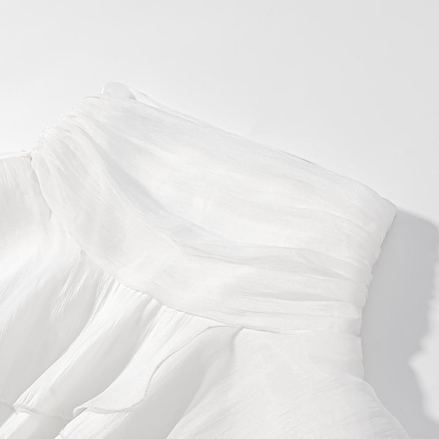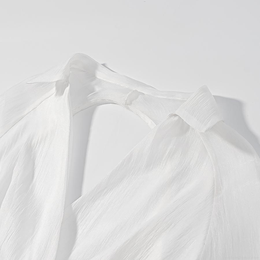 Backless Design, Multi-layered Ruffles, Button-down Cuffs