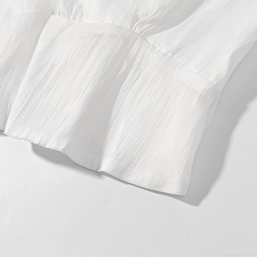 • Women Sexy Backless V-Neck Long Sleeve Top And Tiered Ruffle Mini Skirt Two Piece Set Solid Color Crinkled Chiffon Vacation Outfit