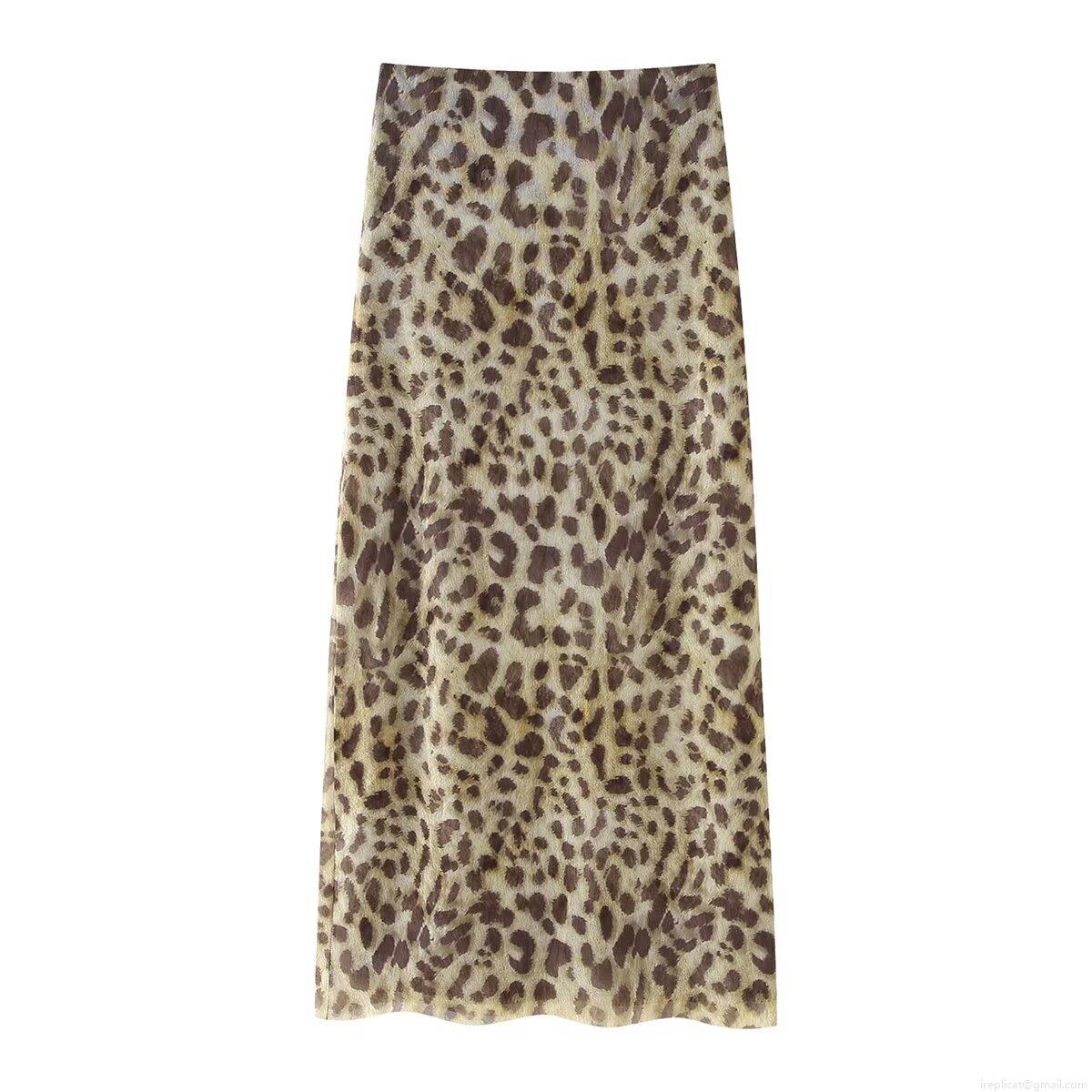 • Women Sexy Leopard Print Mesh Two Piece Set Halter Neck Crop Top And Ruffled Midi Skirt For Vacation Clubwear Streetwear Street Style Polyester Outfits