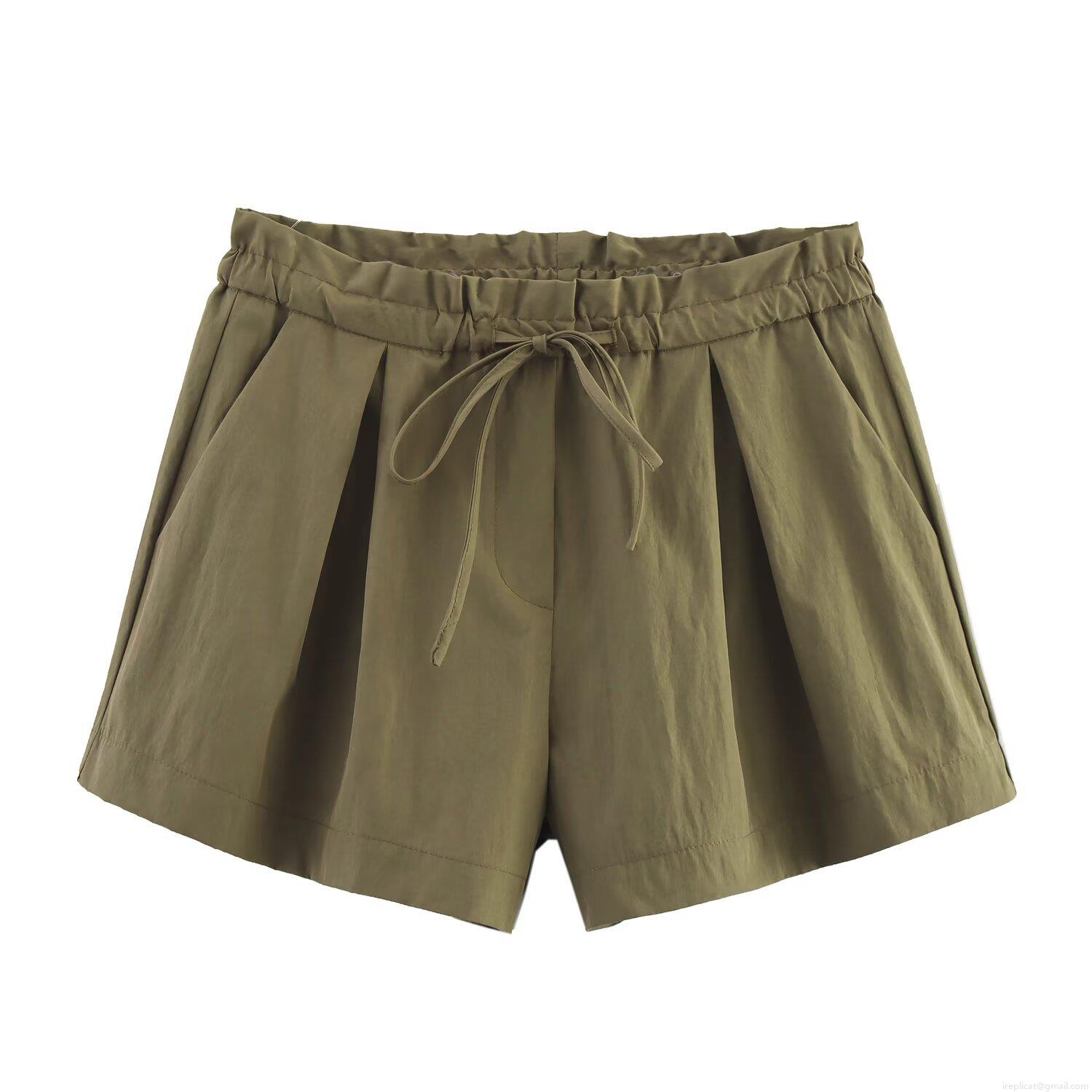 • Women's 2 Piece Casual Set Long Sleeve Pocket Short Shirt and High Waist Drawstring Shorts Solid Color Streetwear Summer Outfits
