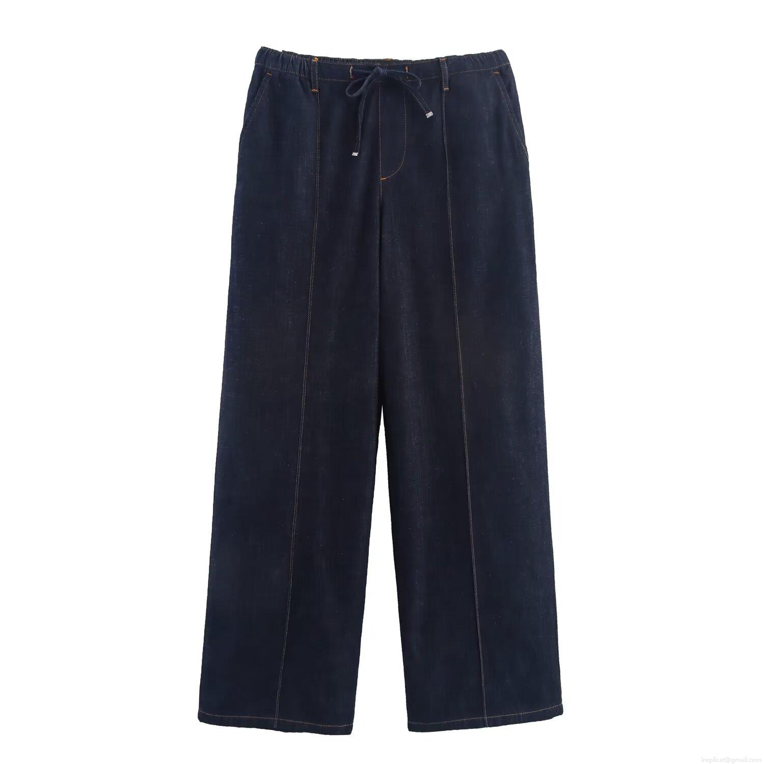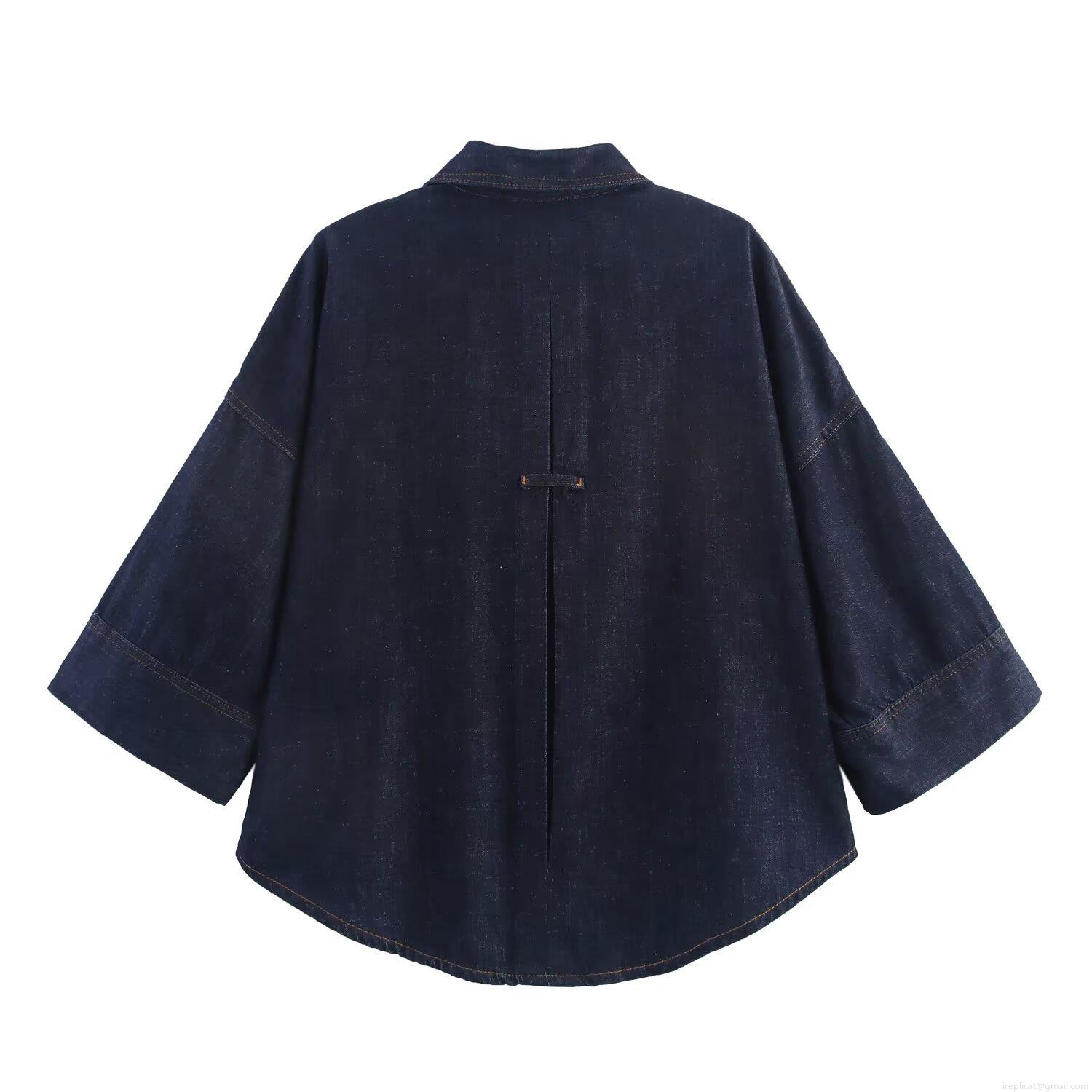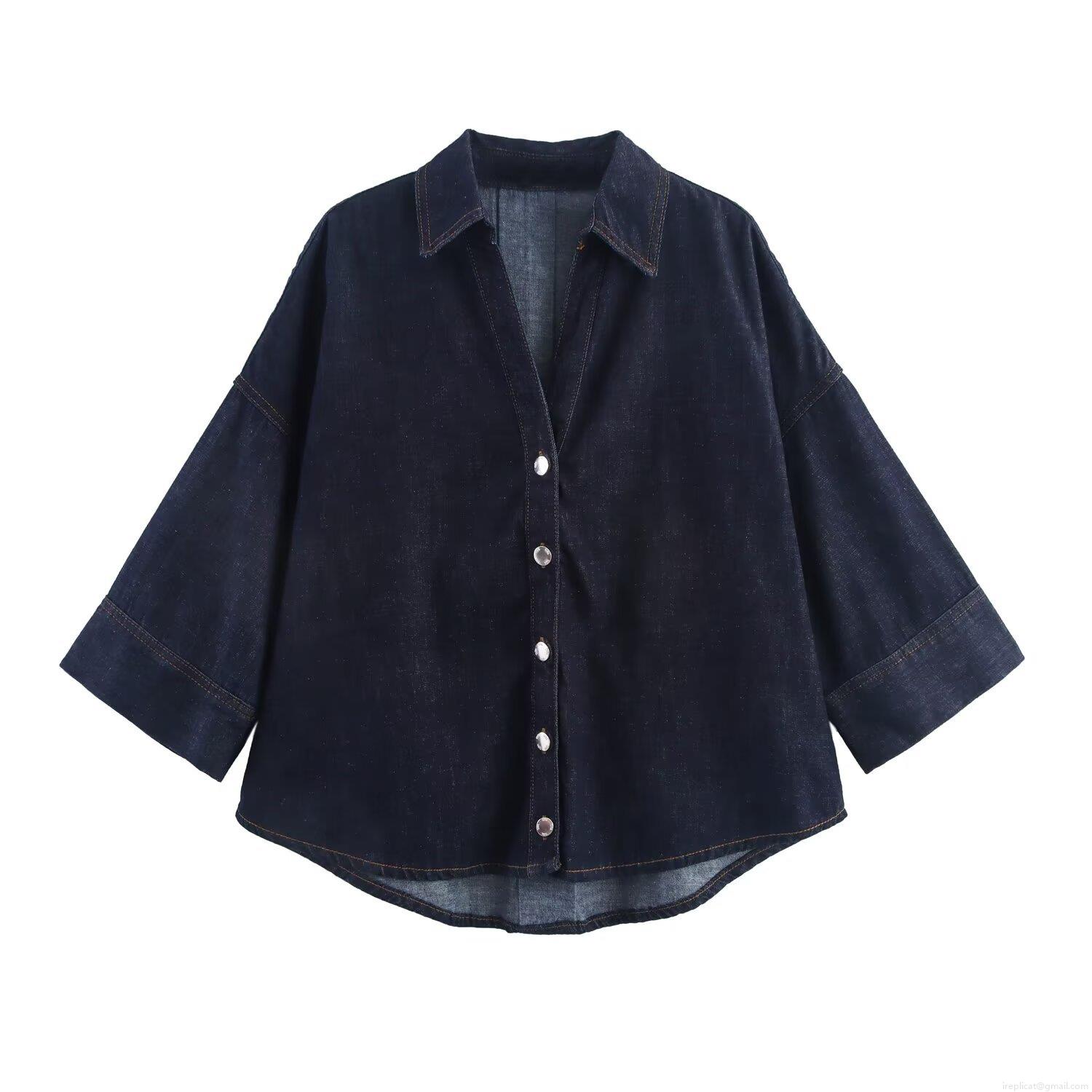 • Women's 2 Piece Denim Set Long Sleeve Button Down Lapel Shirt And High Waist Elastic Wide Leg Pants Outfits Retro Distressed Indigo Jean Suits