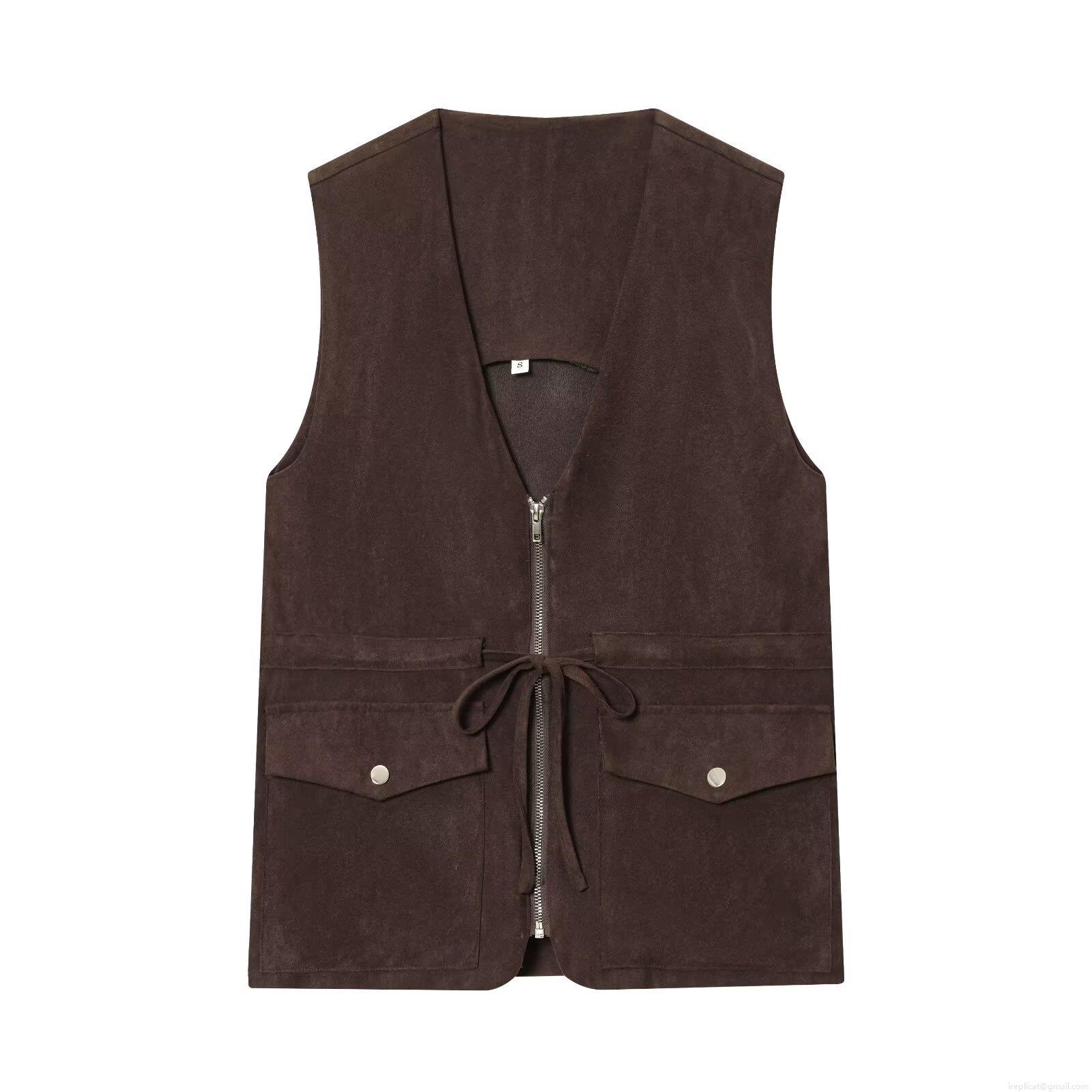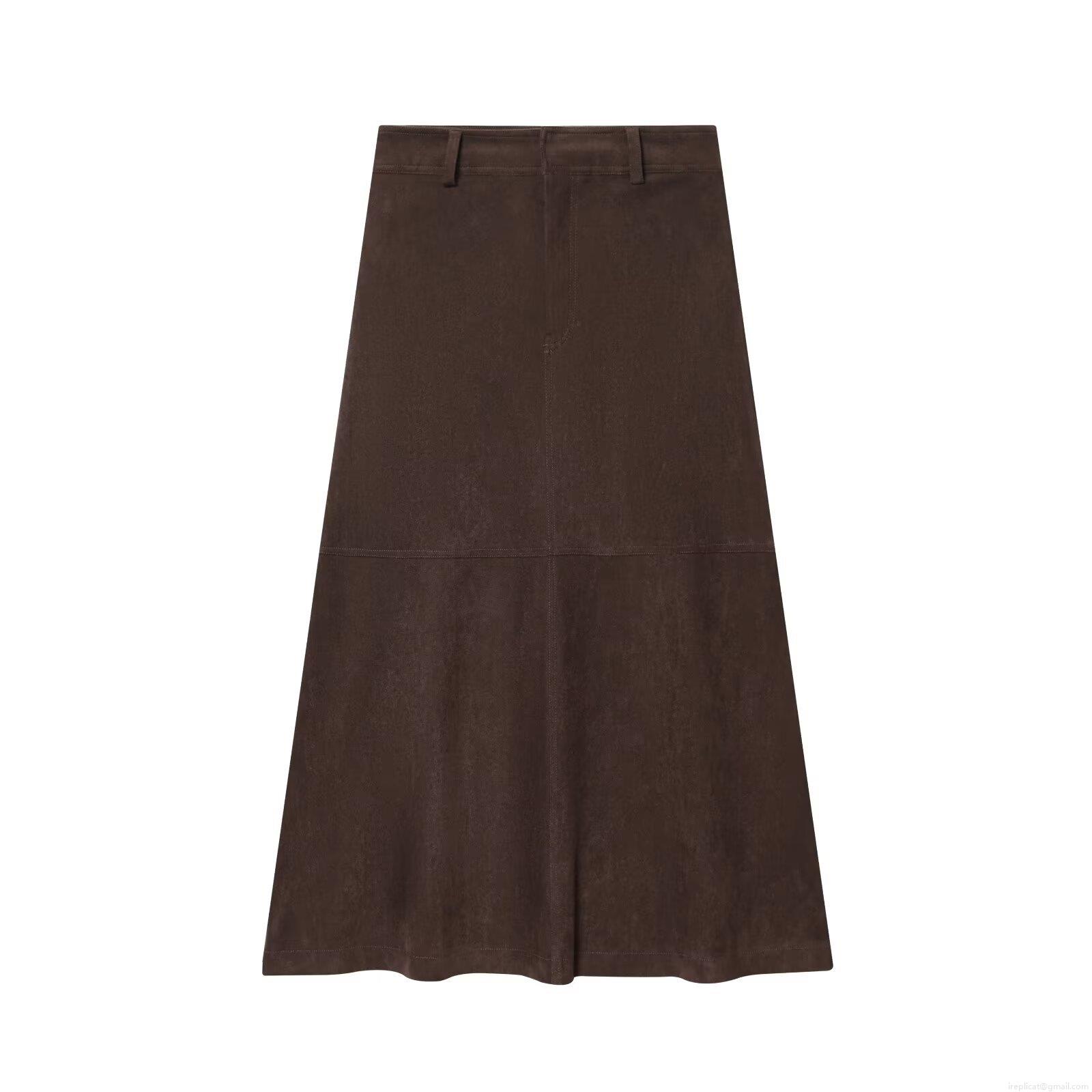 • Women's 2 Piece Faux Suede Skirt Set V Neck Zip Up Vest With Pockets and High Waist A-Line Midi Skirt Solid Color Casual Streetwear Outfits