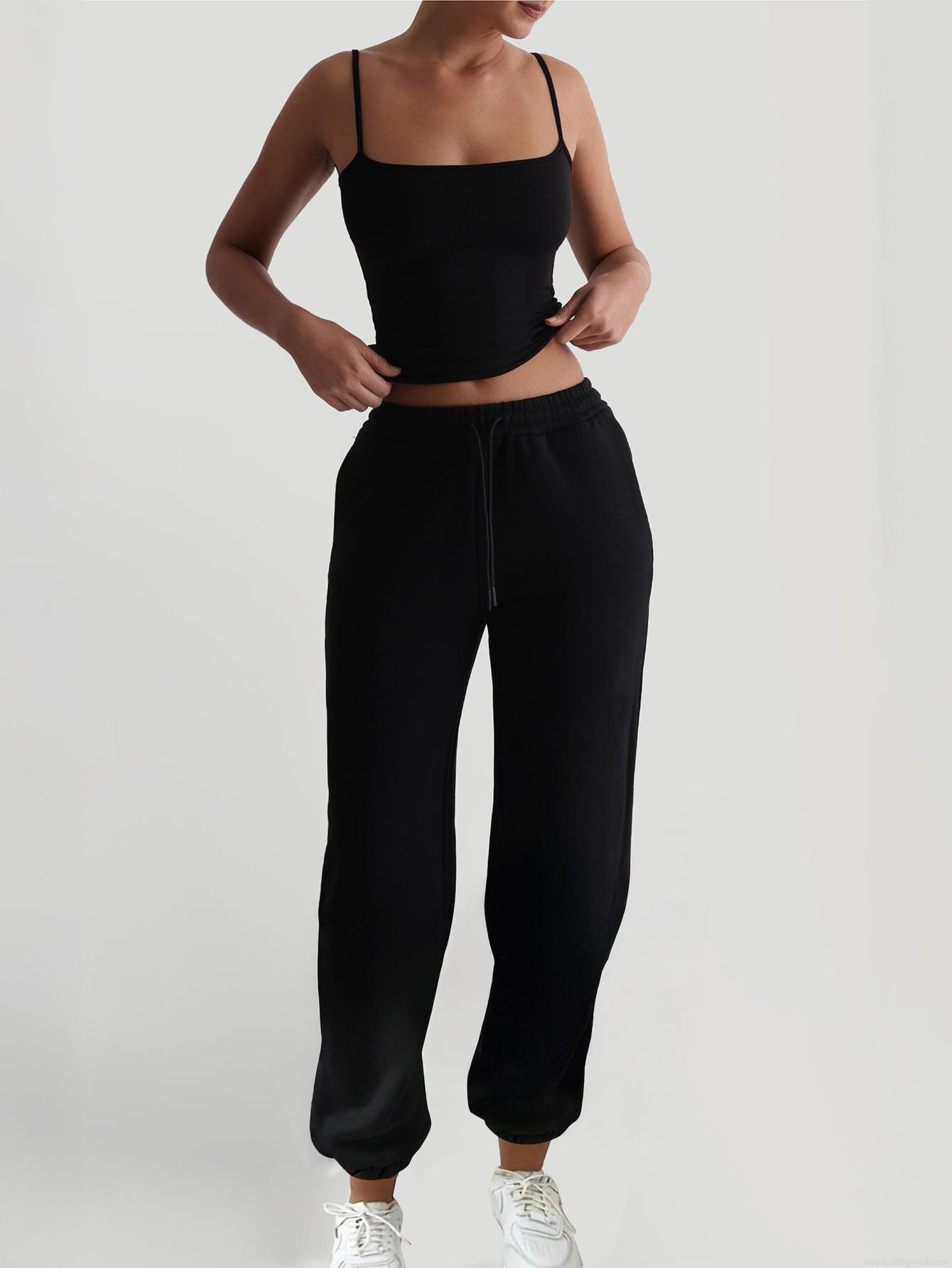 • Women's 2 Piece Lounge Set Sleeveless V Neck Cami Top And Drawstring Jogger Pants Solid Color Polyester Knit Tracksuit For Daily Casual Wear