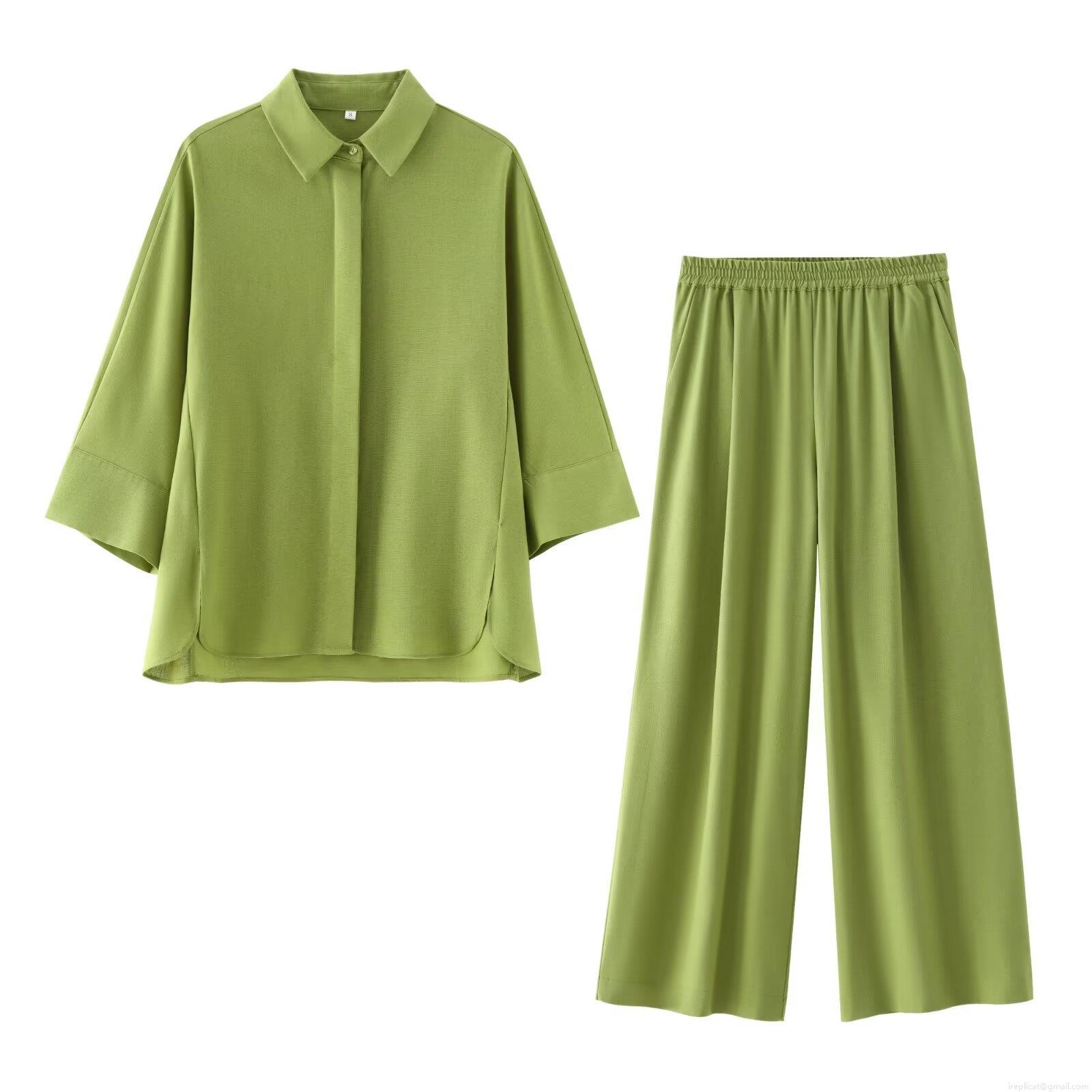 • Women's 2 Piece Outfits Casual Loose Long Sleeve Button Down Shirt And Wide Leg Pants Set Solid Color Polyester Streetwear Loungewear Sets For Women