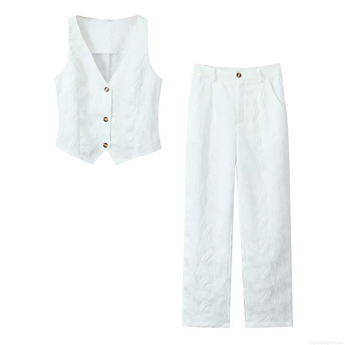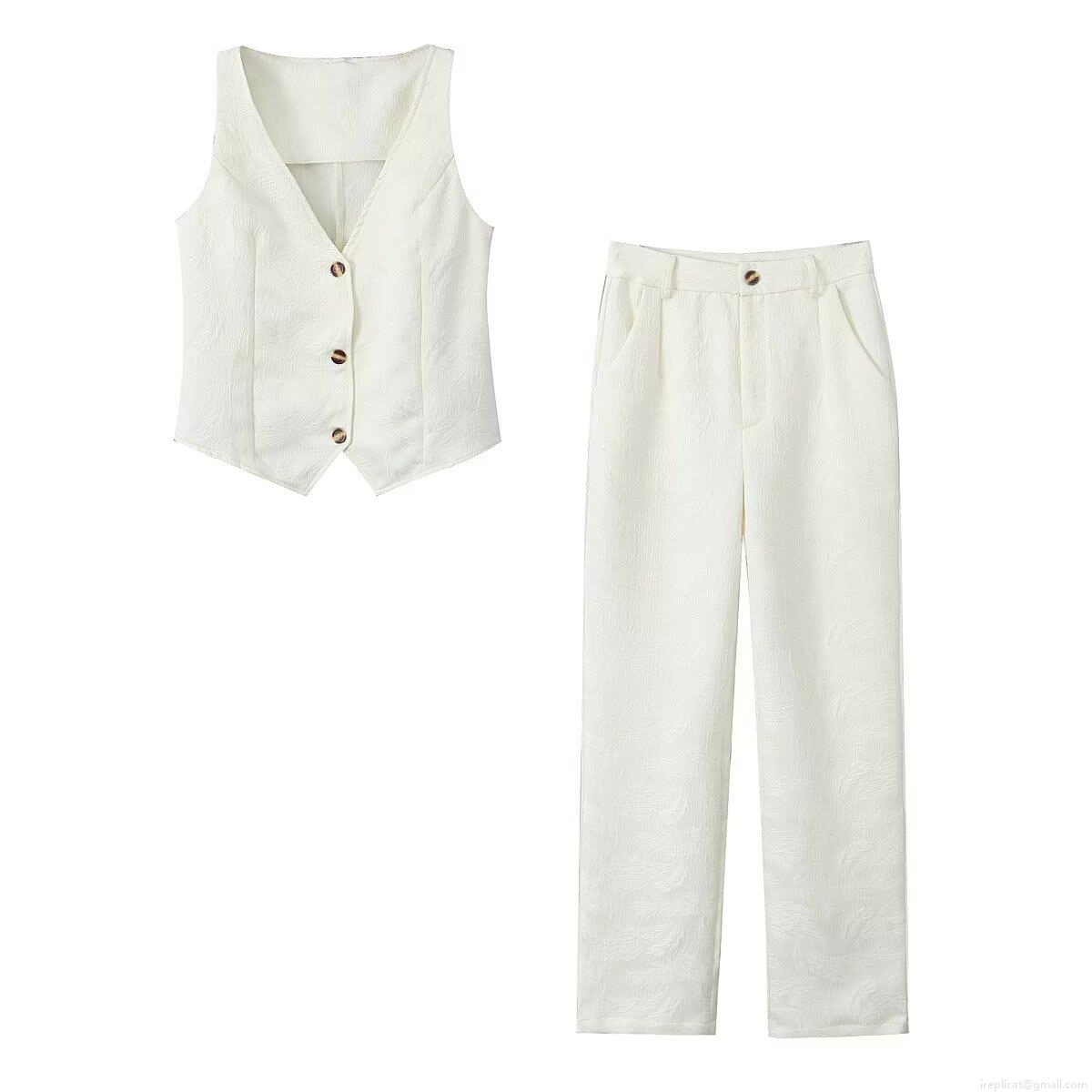 • Women's 2 Piece Outfits Sets V Neck Button Down Vest Waistcoat and High Waisted Straight Leg Pants Set Textured Jacquard Fabric Casual Streetwear Suits for Women