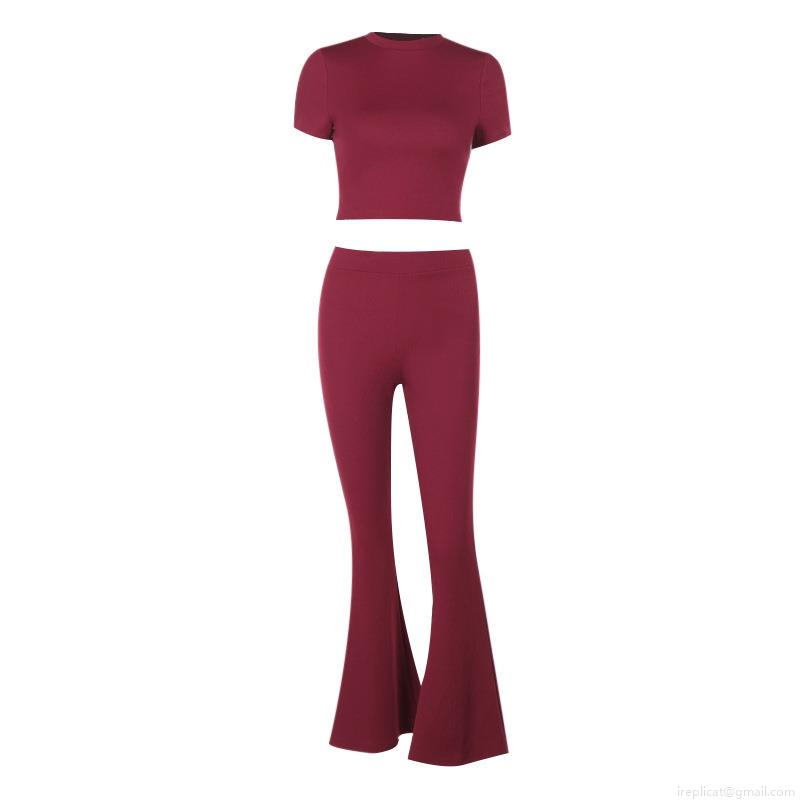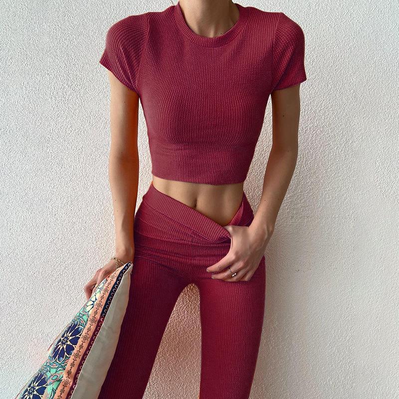• Women's 2 Piece Ribbed Knit Set Casual Short Sleeve Crewneck Crop Top And High Waist Flared Bell Bottom Pants Slim Fit Lounge Tracksuit Outfits