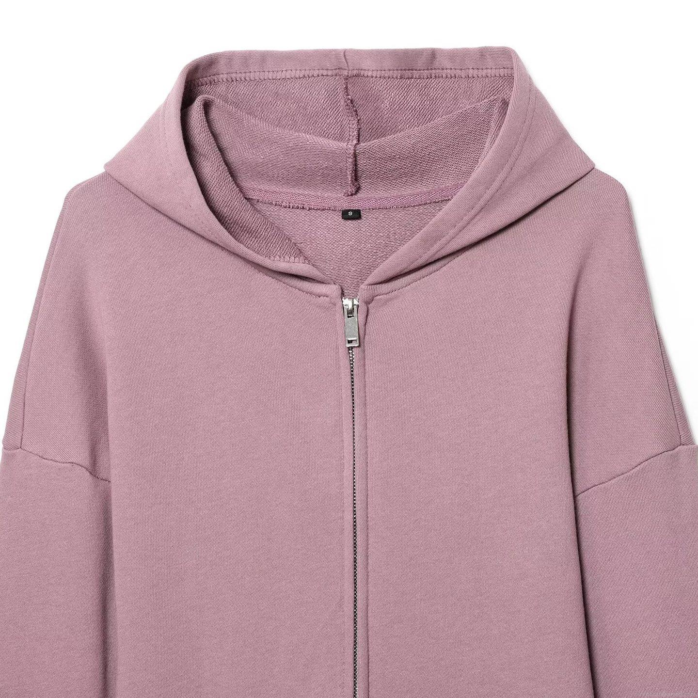 Solid Color, Short, Zipper, Drawstring, Hood, Wide-leg, Ribbed Seam
