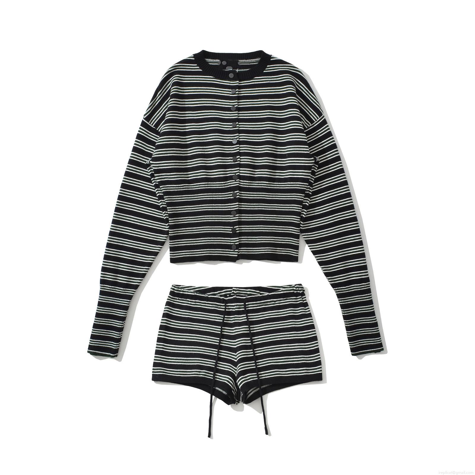 • Women's 2 Piece Striped Knit Set Casual Long Sleeve Button Down Cardigan And Drawstring Shorts Loungewear Set Soft Polyester Summer Outfit For Women Casual Wear