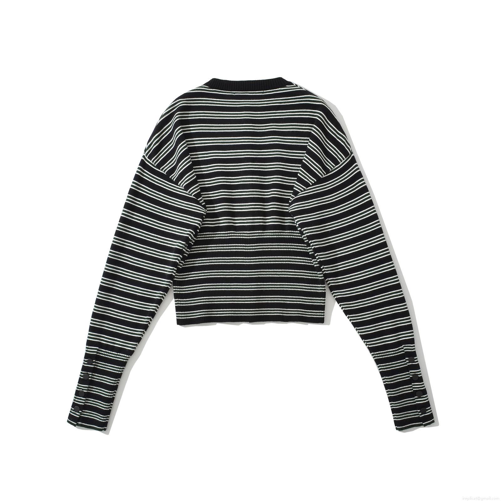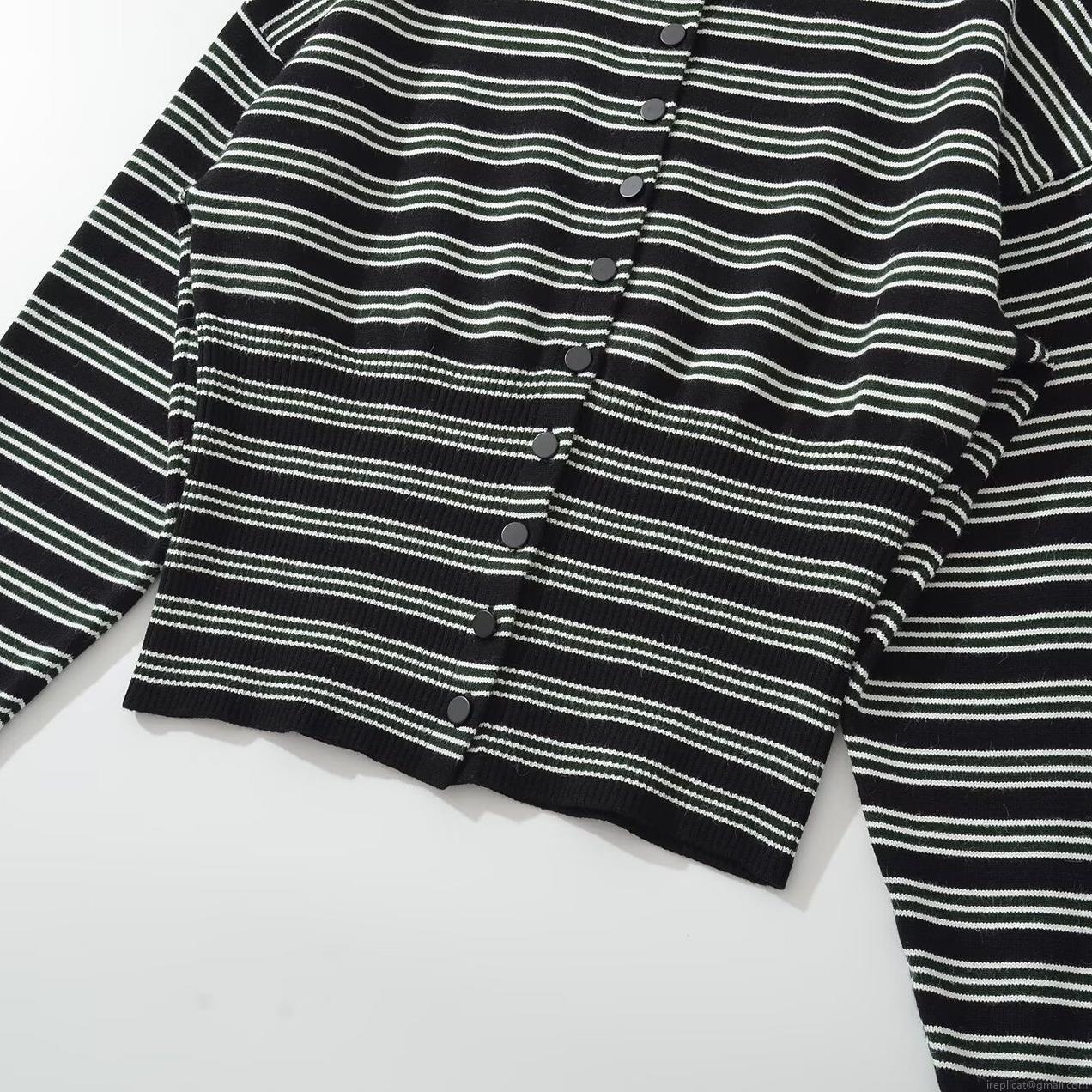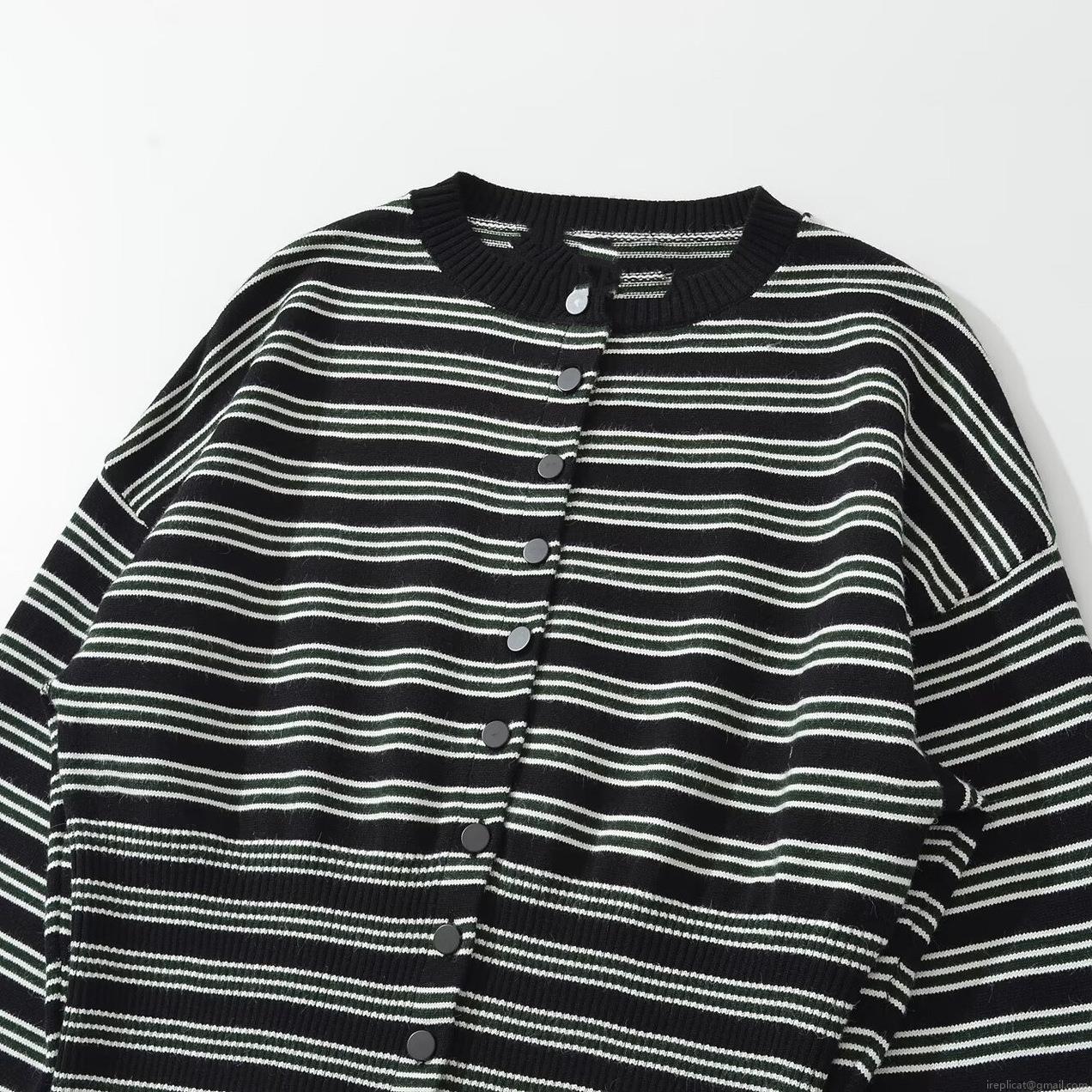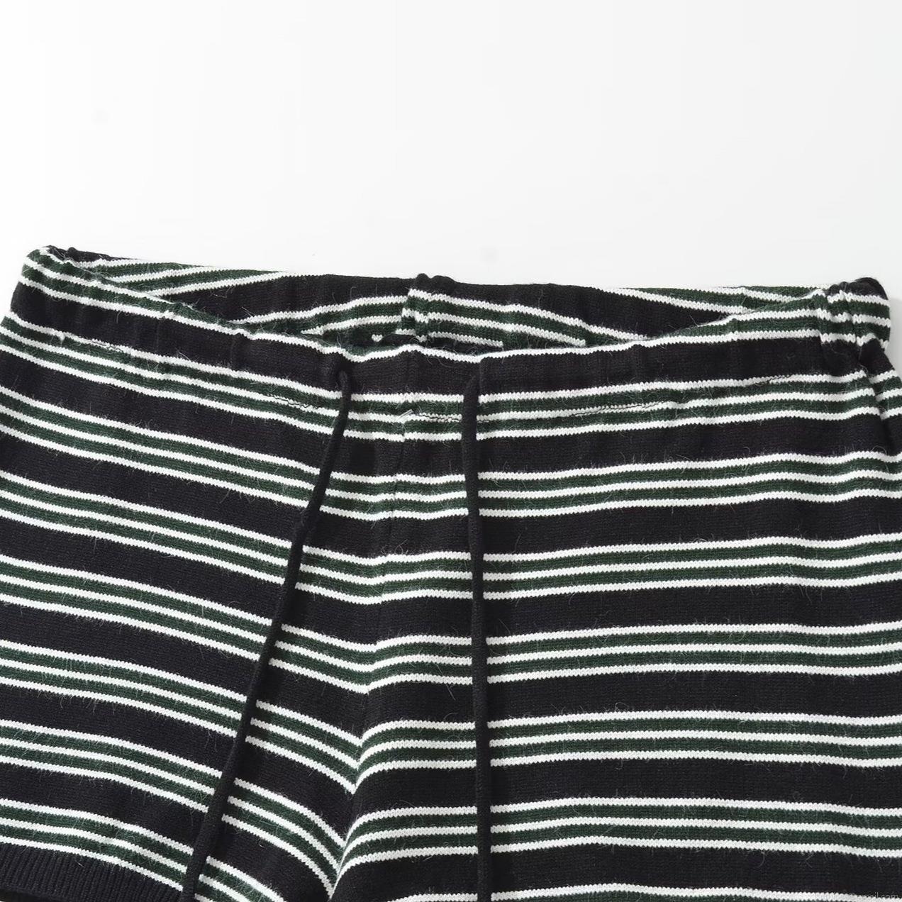 Stripe, Horizontal Stripes, Knitted Texture, Waist Drawstring, Round Neck Buttons