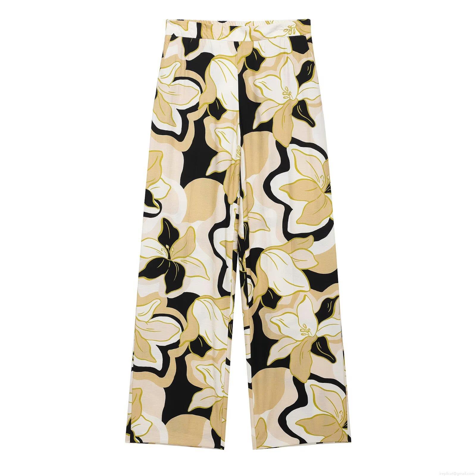 • Women's 2 Piece Summer Casual Outfit Abstract Floral Print Short Sleeve Shirt And Wide Leg Pants Set 100% Polyester Lightweight Breathable Streetwear Vacation Two Piece Set For Women