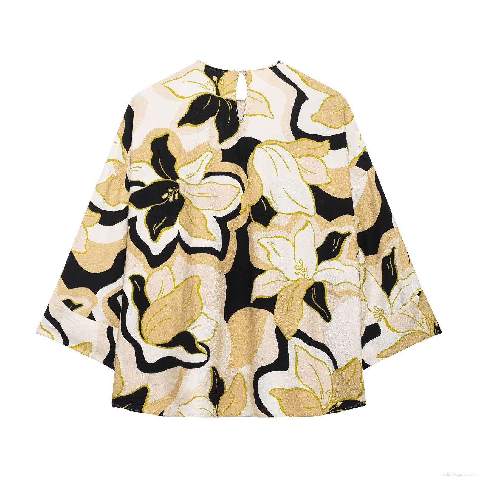 Plants And Flowers, Printing, Wide-leg, Batwing Sleeves, Abstract Print