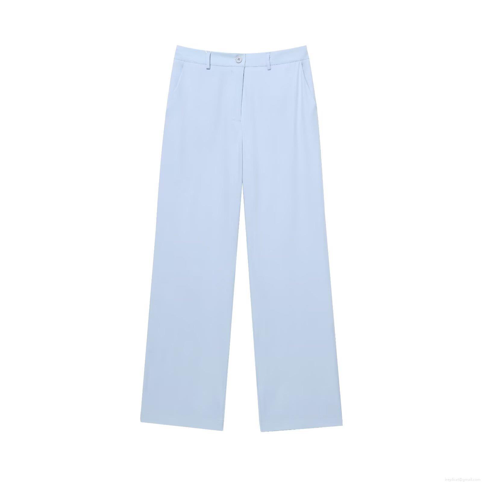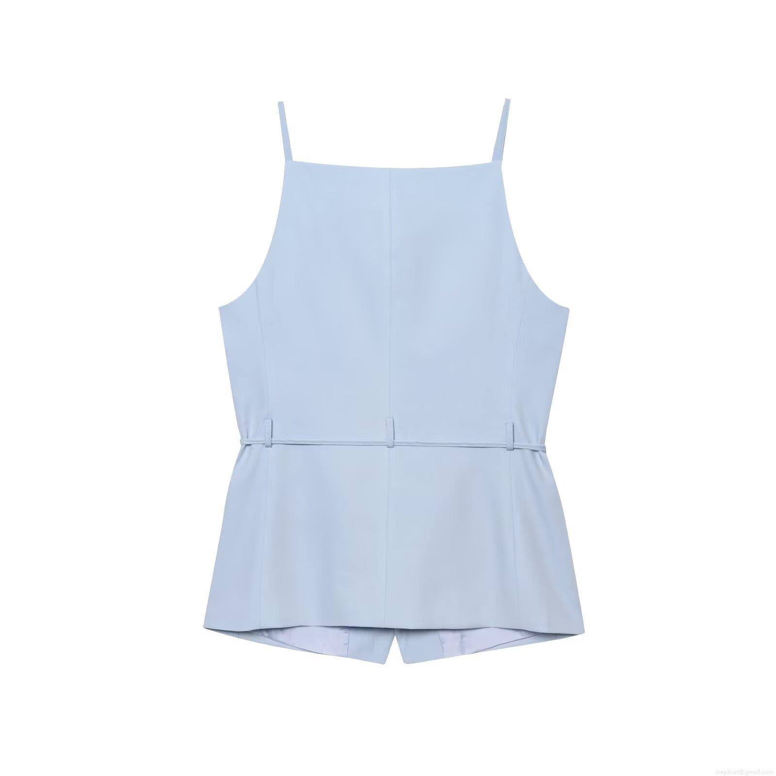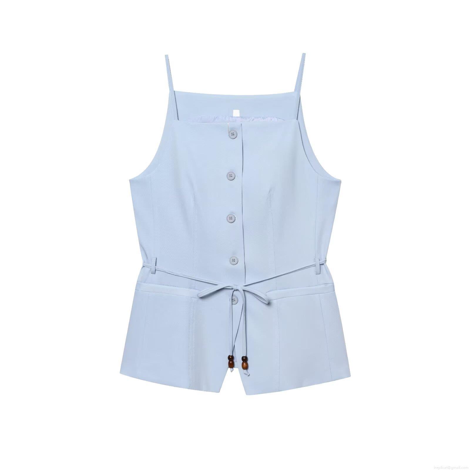 • Women's 2 Piece Summer Outfits Set Light Blue Camisole Top and Wide Leg Pants With Beaded Belt Button Front Sleeveless Square Neck Woven Polyester Casual Vacation Streetwear For Women