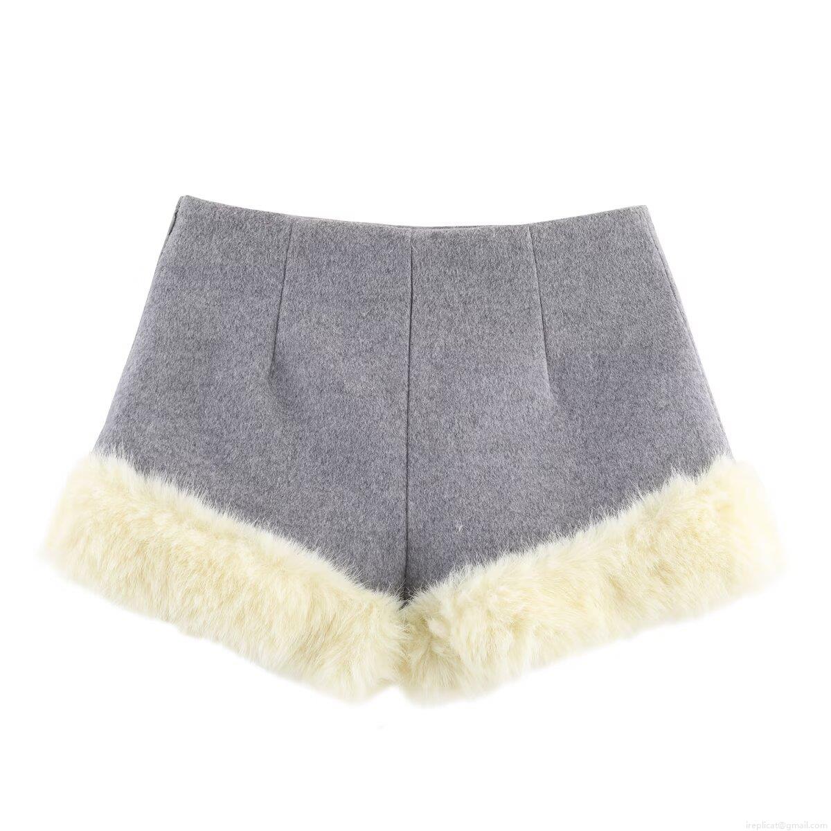 Women's 2 Piece Woolen Jacket And Shorts Set Faux Fur Trim Grey Long Sleeve Single Breasted Coat High Waist Shorts Elegant Autumn Winter Outfit