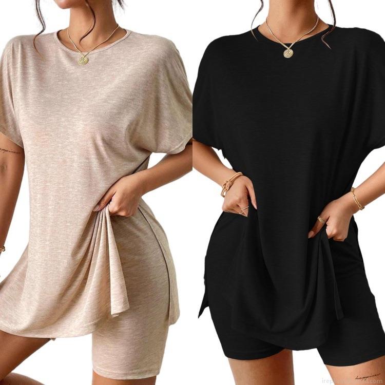 • Women's 2-Piece Lounge Set Oversized Round Neck Batwing Sleeve T-Shirt Side Slit Top And High Waist Biker Shorts Polyester Spandex Summer Casual Sporty Home Outfits