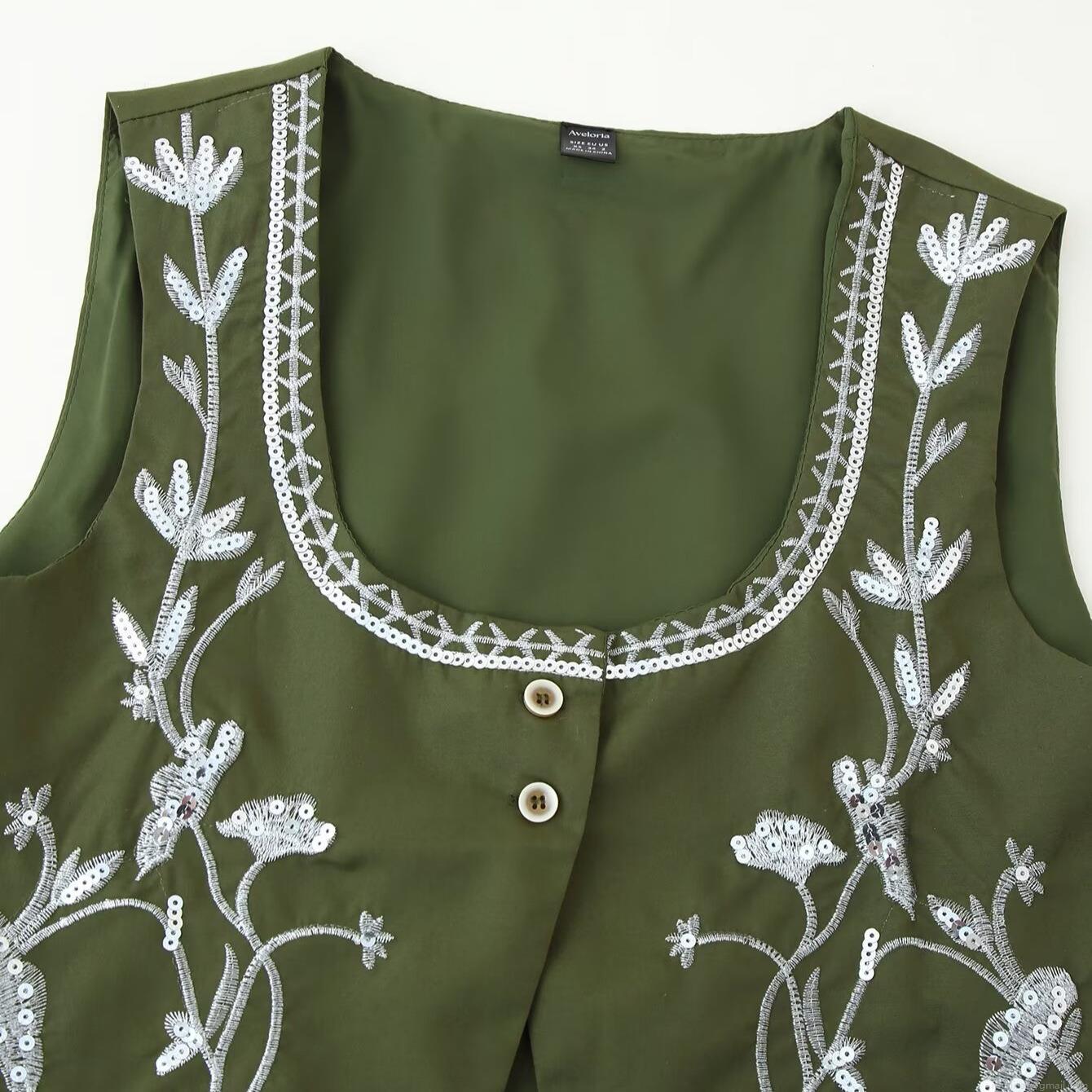 • Women's 2-Piece Skirt Set Heavy Sequin Floral Embroidery Sleeveless Vest And High Waist Pleated Midi Skirt Retro Casual Suit For Vacation Party