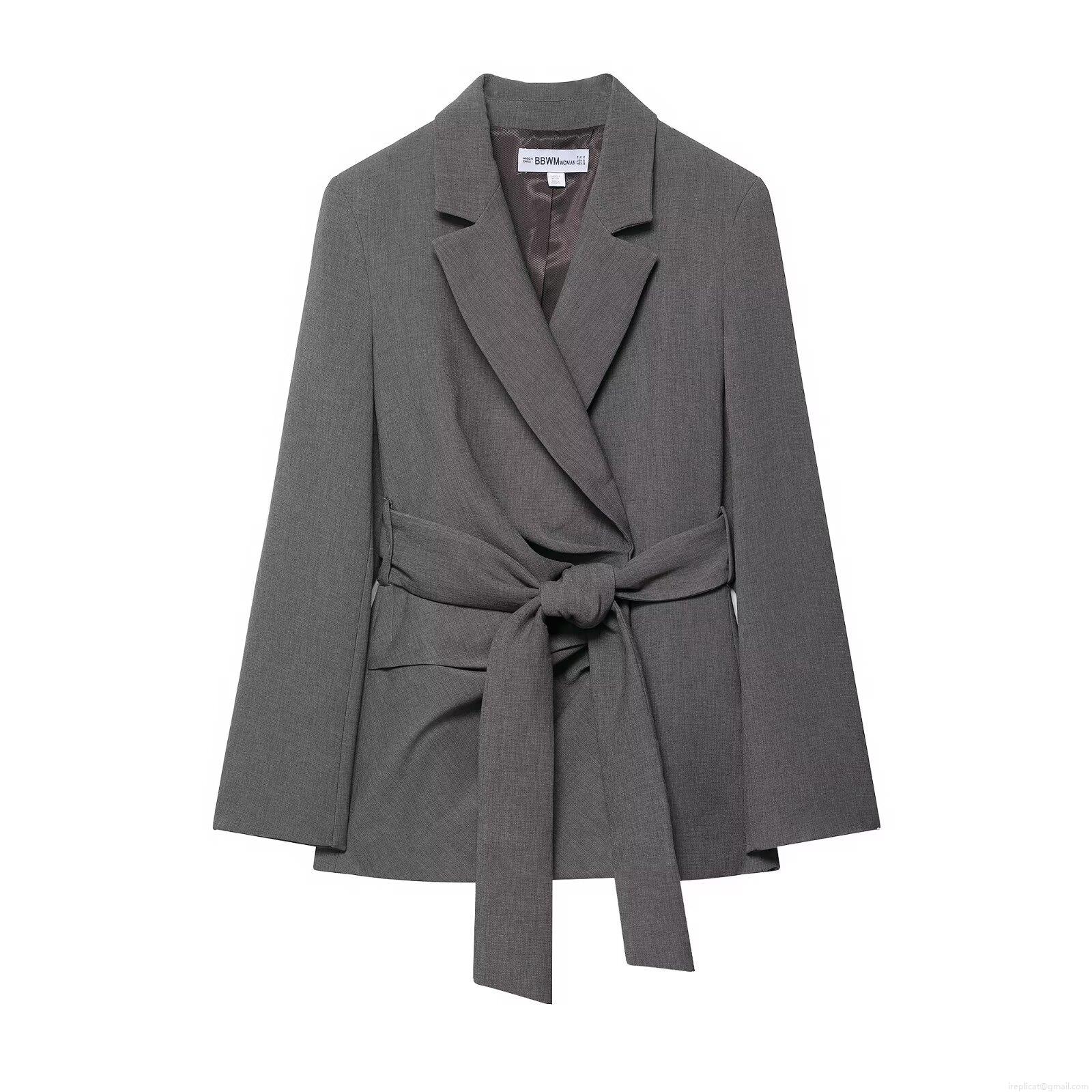 • Women's 2-Piece Suit Set Elegant Dark Grey Polyester Padded Shoulder Blazer With Belt And High Waist Tapered Trousers For Office Lady Street Style Professional Outfit