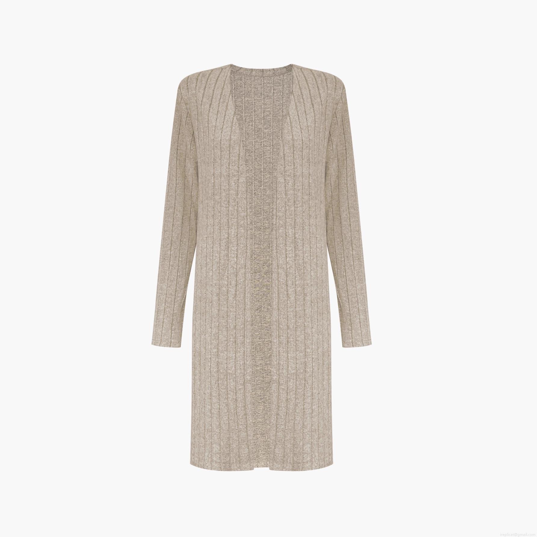 Solid Color, Three-piece Set, Rough Texture, Ribbed Strip, Mid-length Cardigan