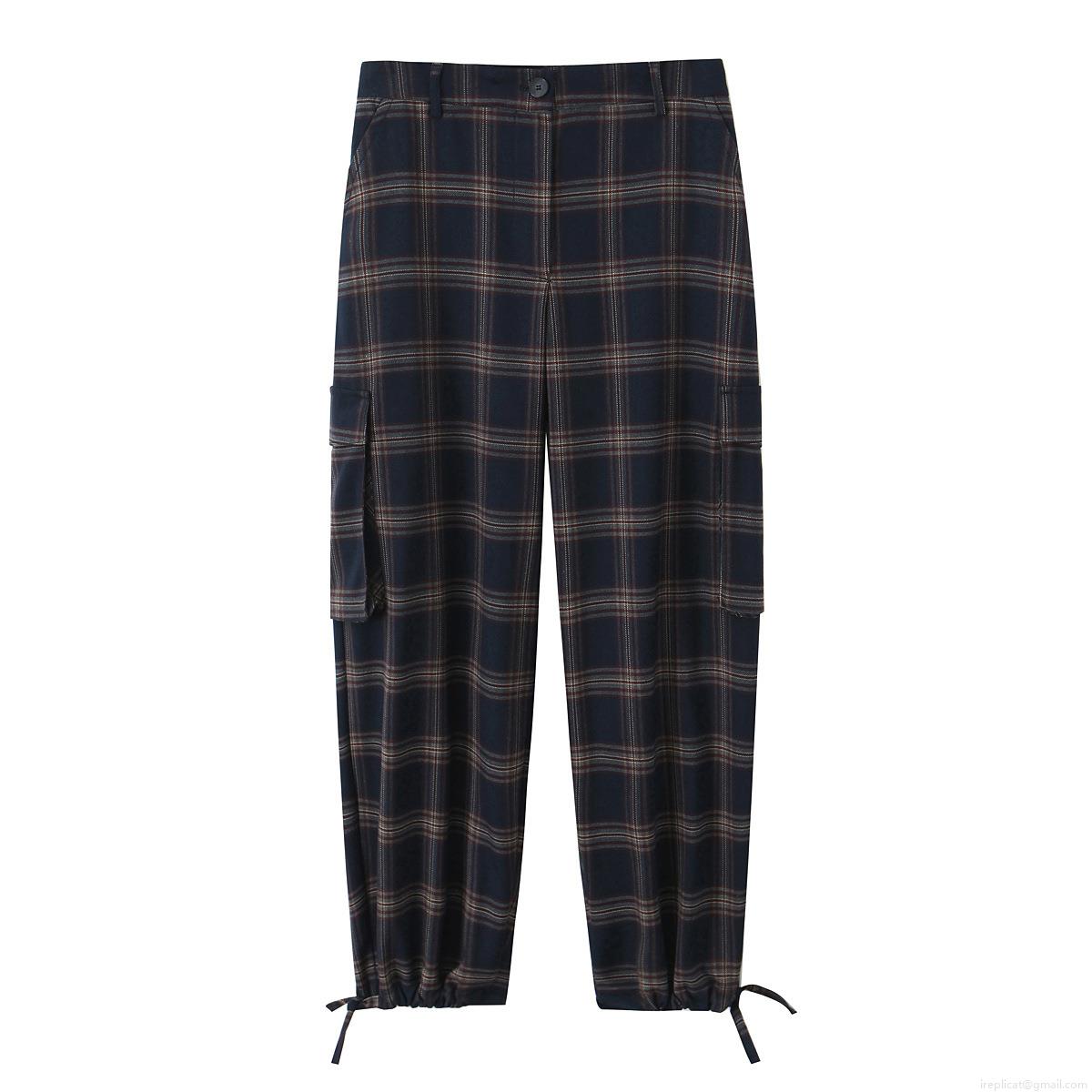 • Women's Autumn Winter Plaid Hooded Jacket and Cargo Pants Set Navy Blue Checkered Two Piece Outfit Long Sleeve Coat with Multi-Pocket Trousers