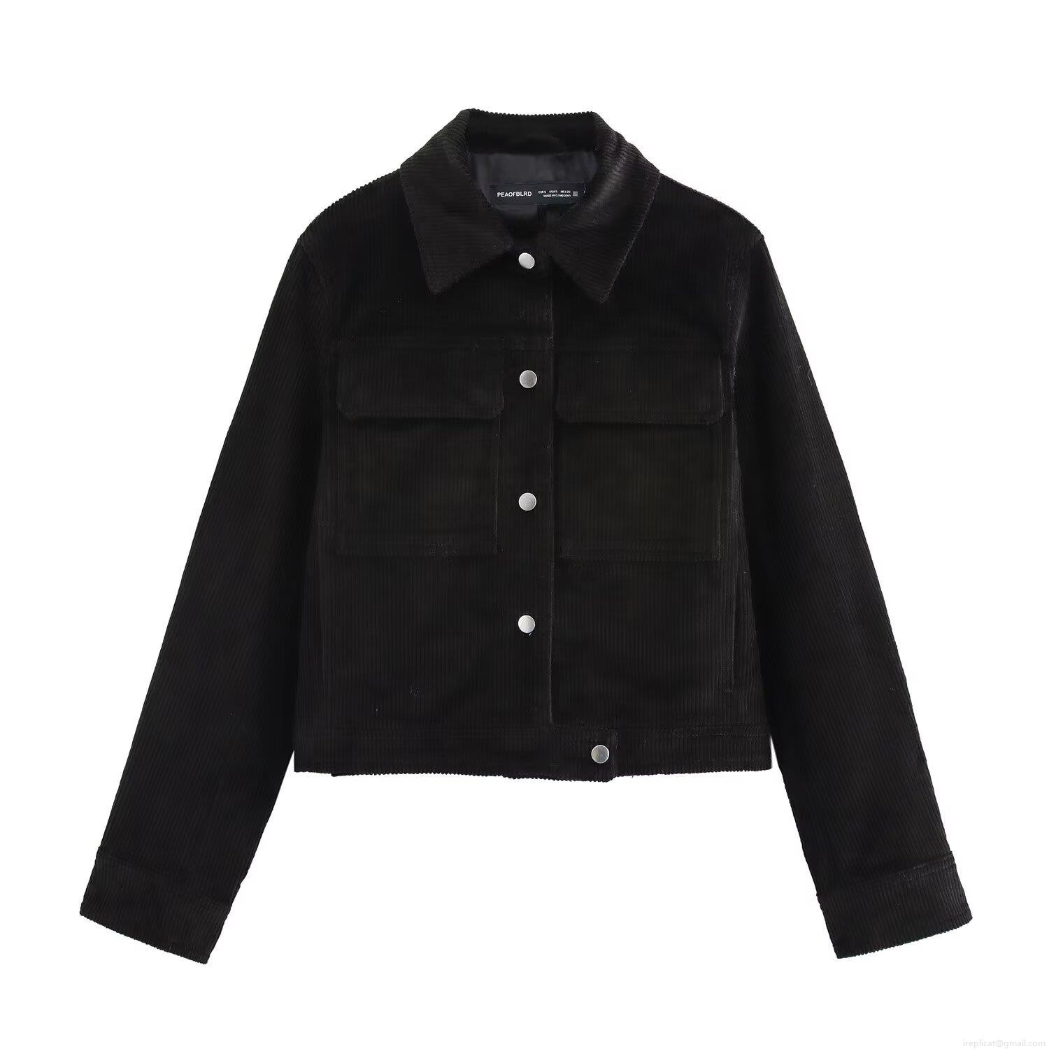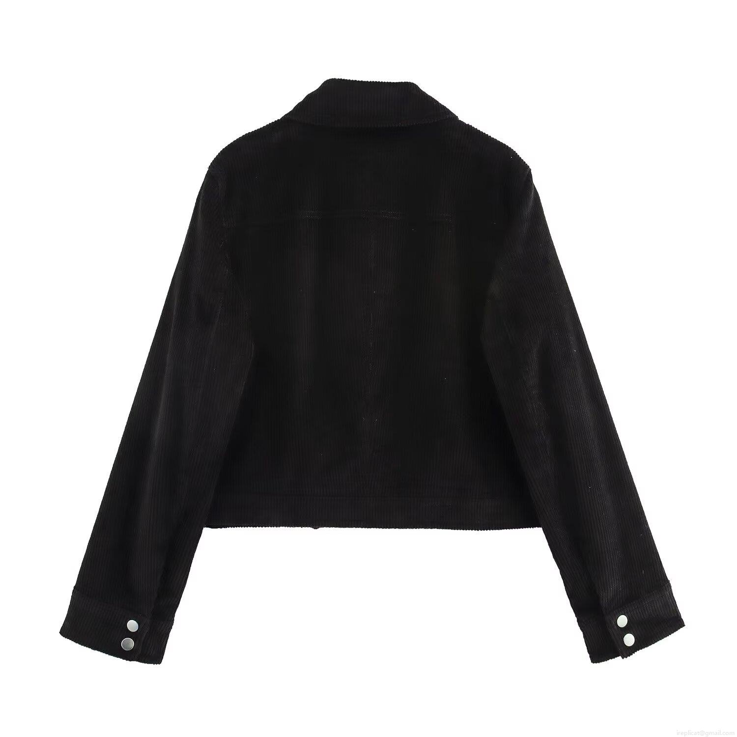 Women's Black Corduroy Two Piece Set Fashion Short Utility Jacket And High Waist Wide Leg Pants Streetwear Casual Suit Solid Color Long Sleeve Button Coat Trousers Outfits