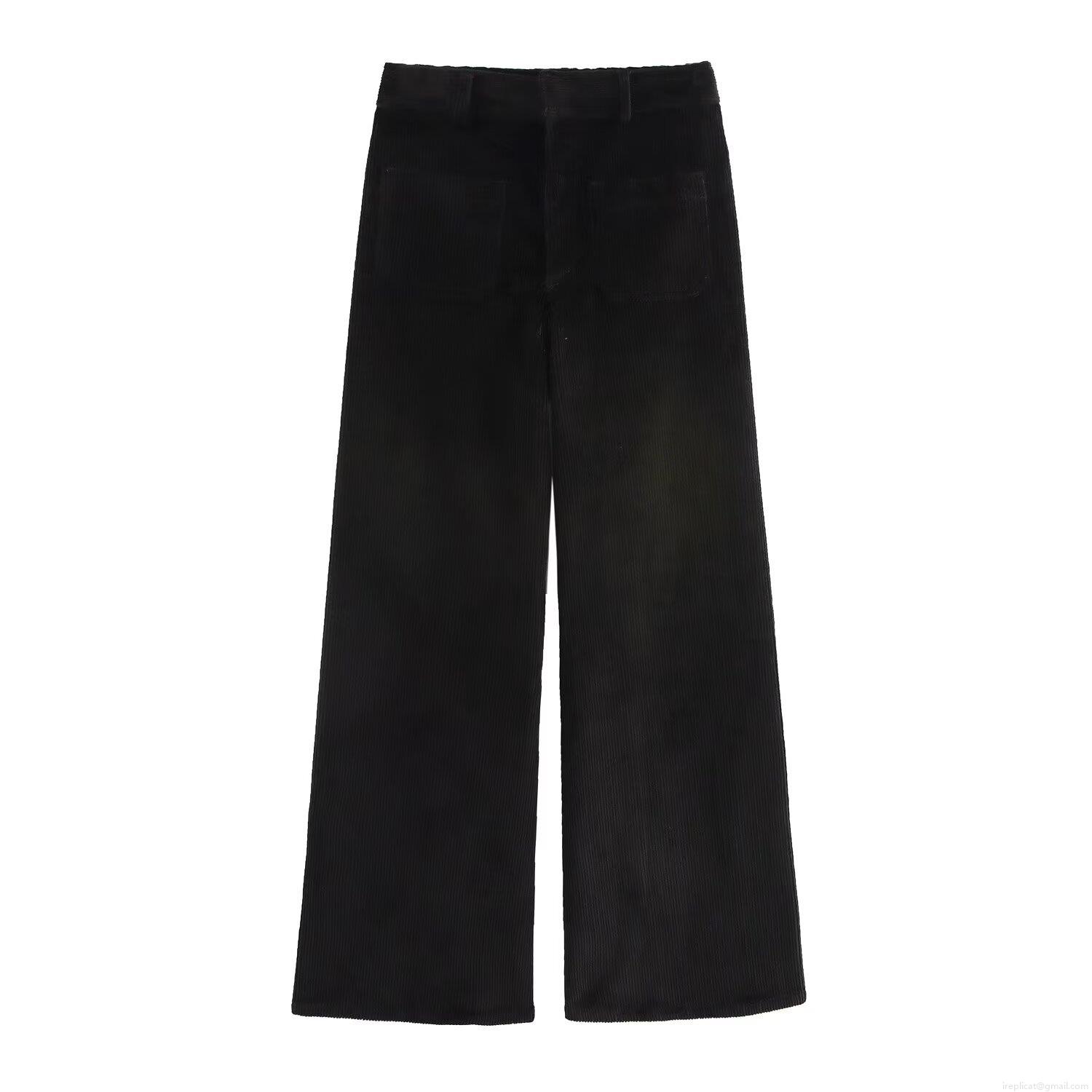 Solid Color, Corduroy Texture, Big Pocket, Wide-leg Design, Silver Metal Buttons