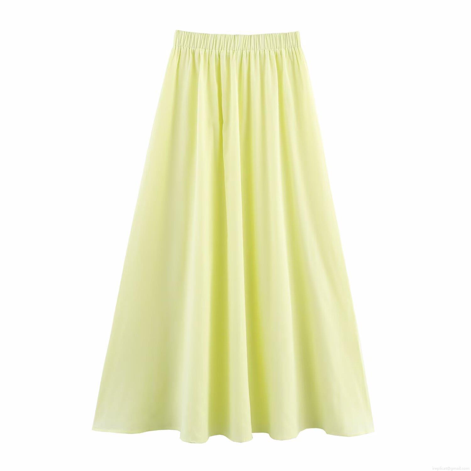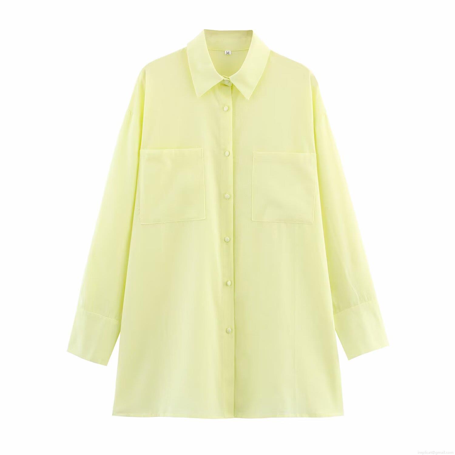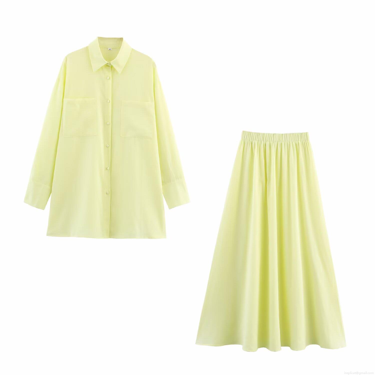 • Women's Casual 2 Piece Outfits Long Sleeve Button Down Shirt And High Waist A-Line Maxi Skirt Set Solid Lemon Yellow Cotton Linen Feel Streetwear Vacation Sets