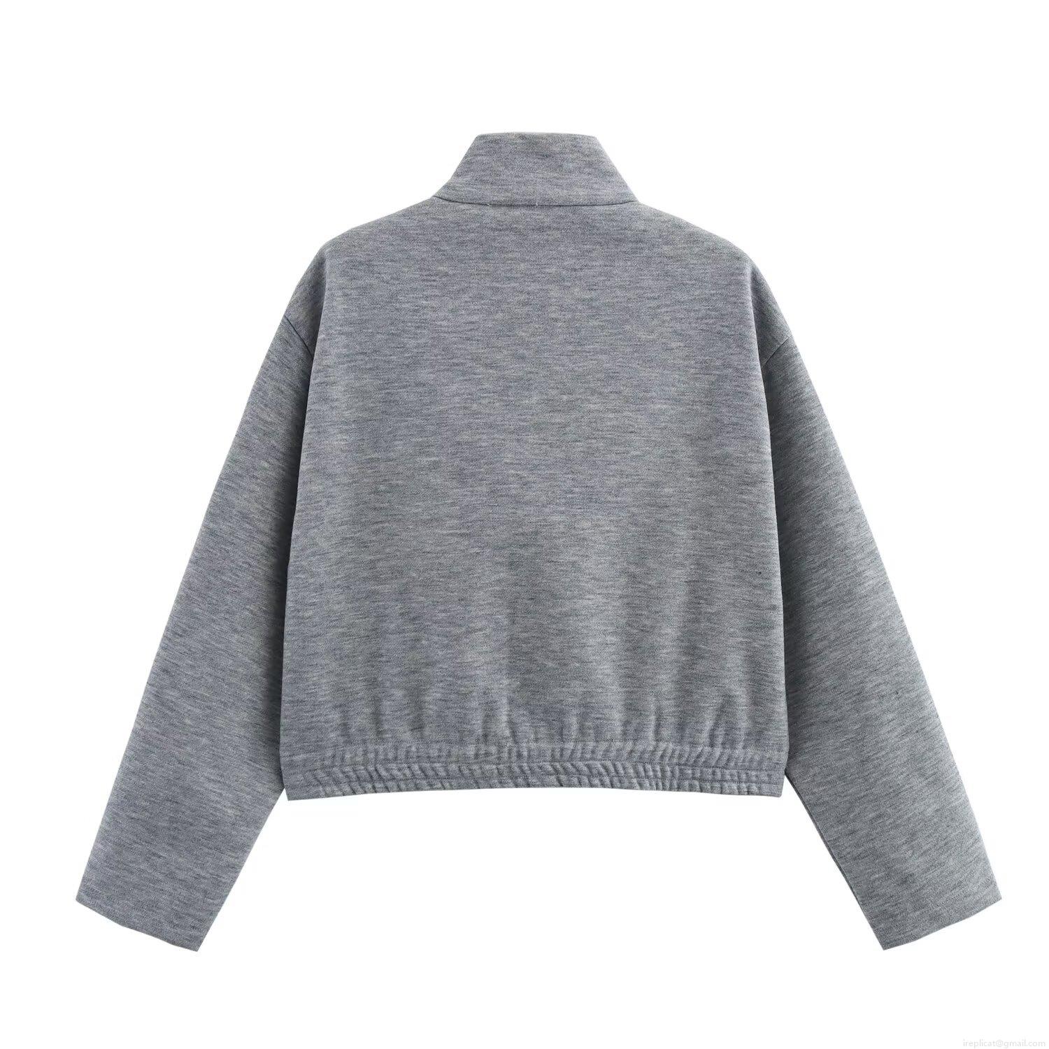 Solid Color, Splice, Collage, Zipper, Lace, Stand-up Collar