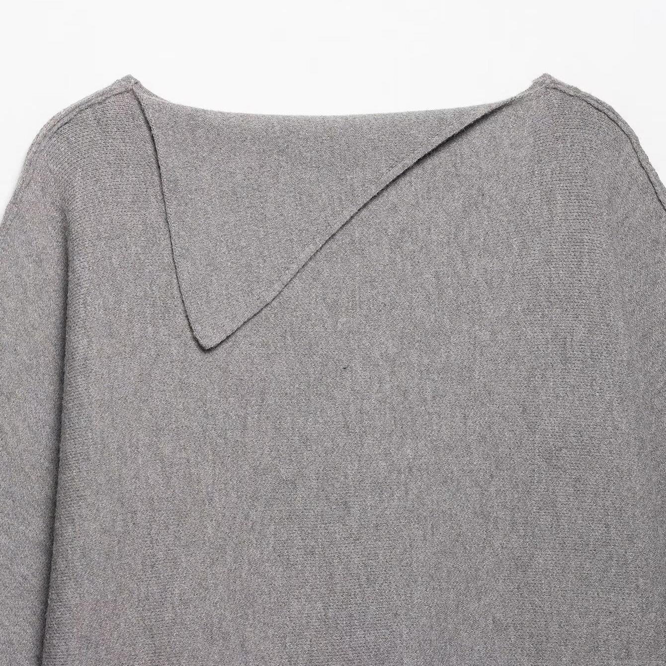 Solid Color, Splice, Knitted Texture, Irregular Neckline