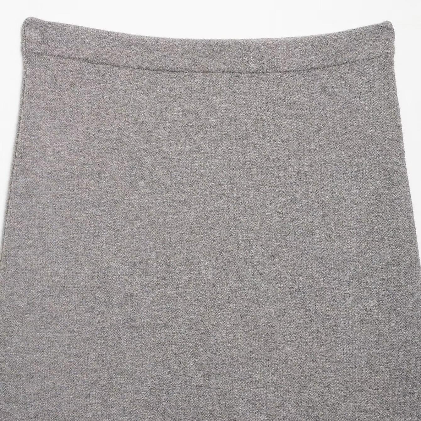 • Women's Casual Grey Knit Skirt Set Elegant Asymmetrical Folding Collar Long Sleeve Sweater Top And High Waist Straight Midi Skirt 100% Polyester Two Piece Co-ord For Office Daily Wear Autumn Winter