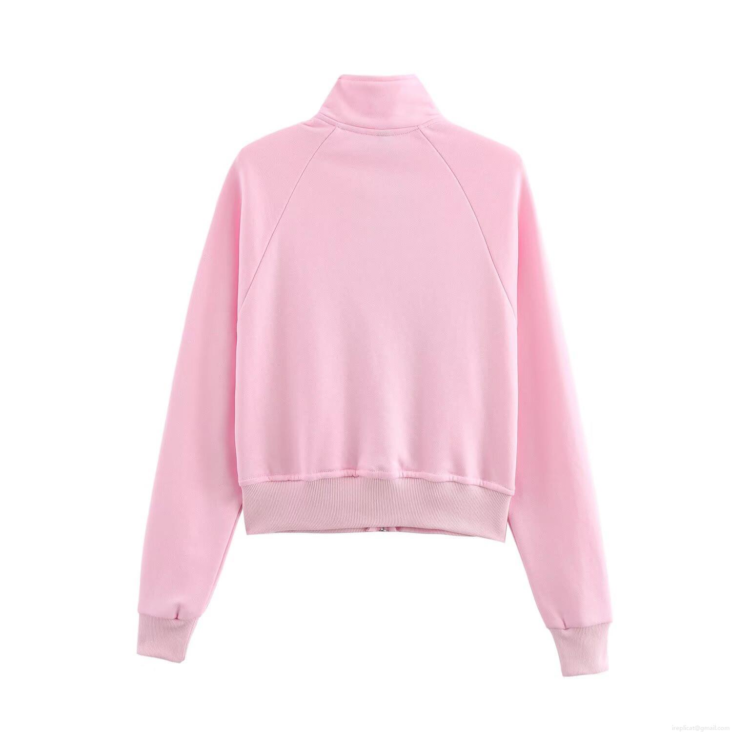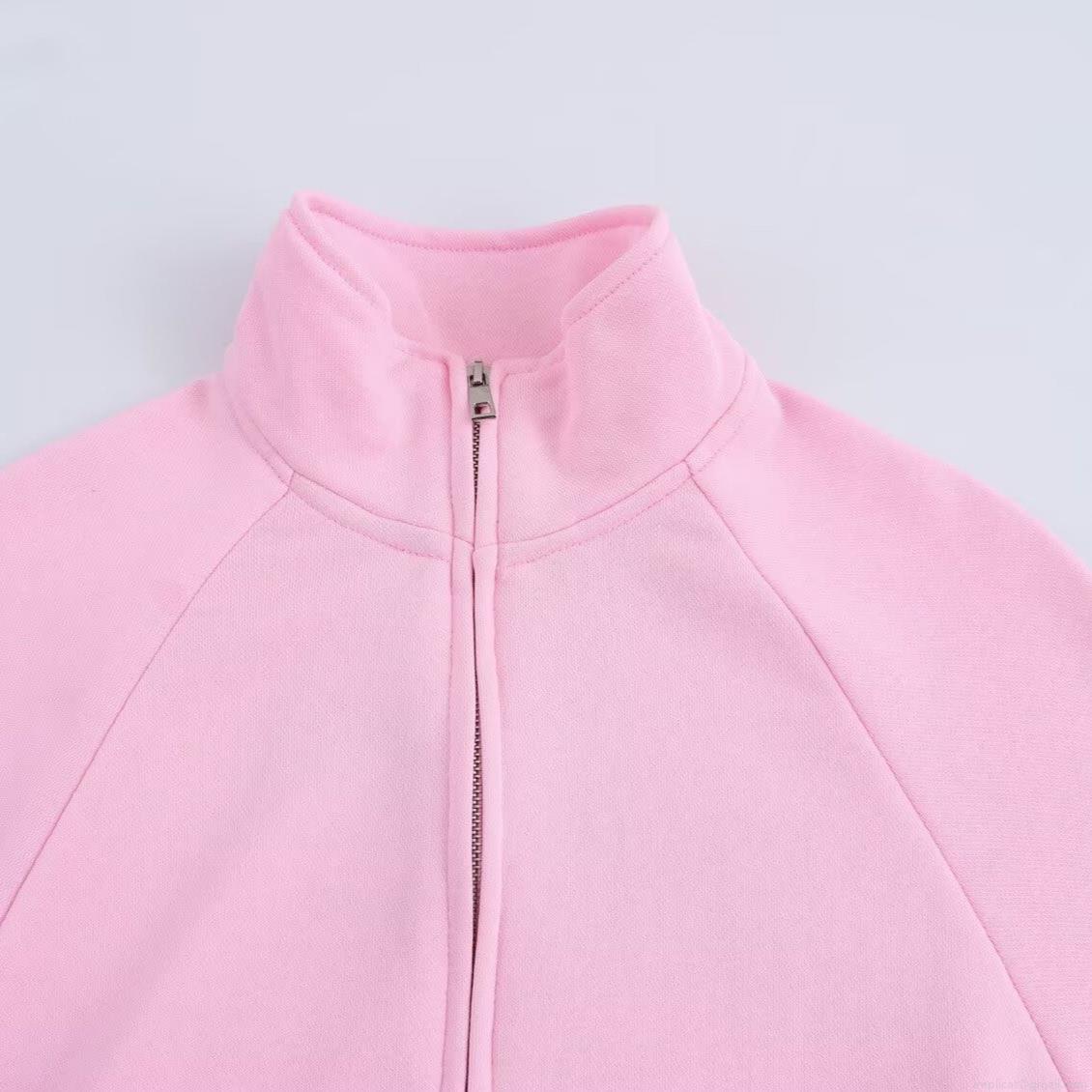Solid Color, Pocket, Zipper, Flared Trouser Legs, Raglan Sleeves