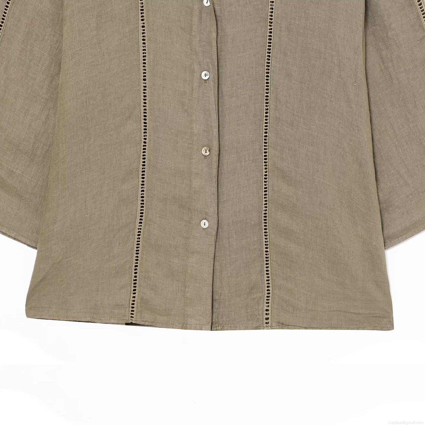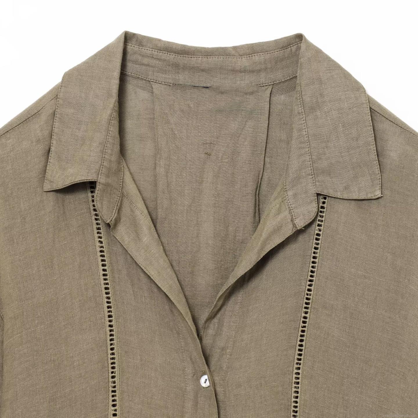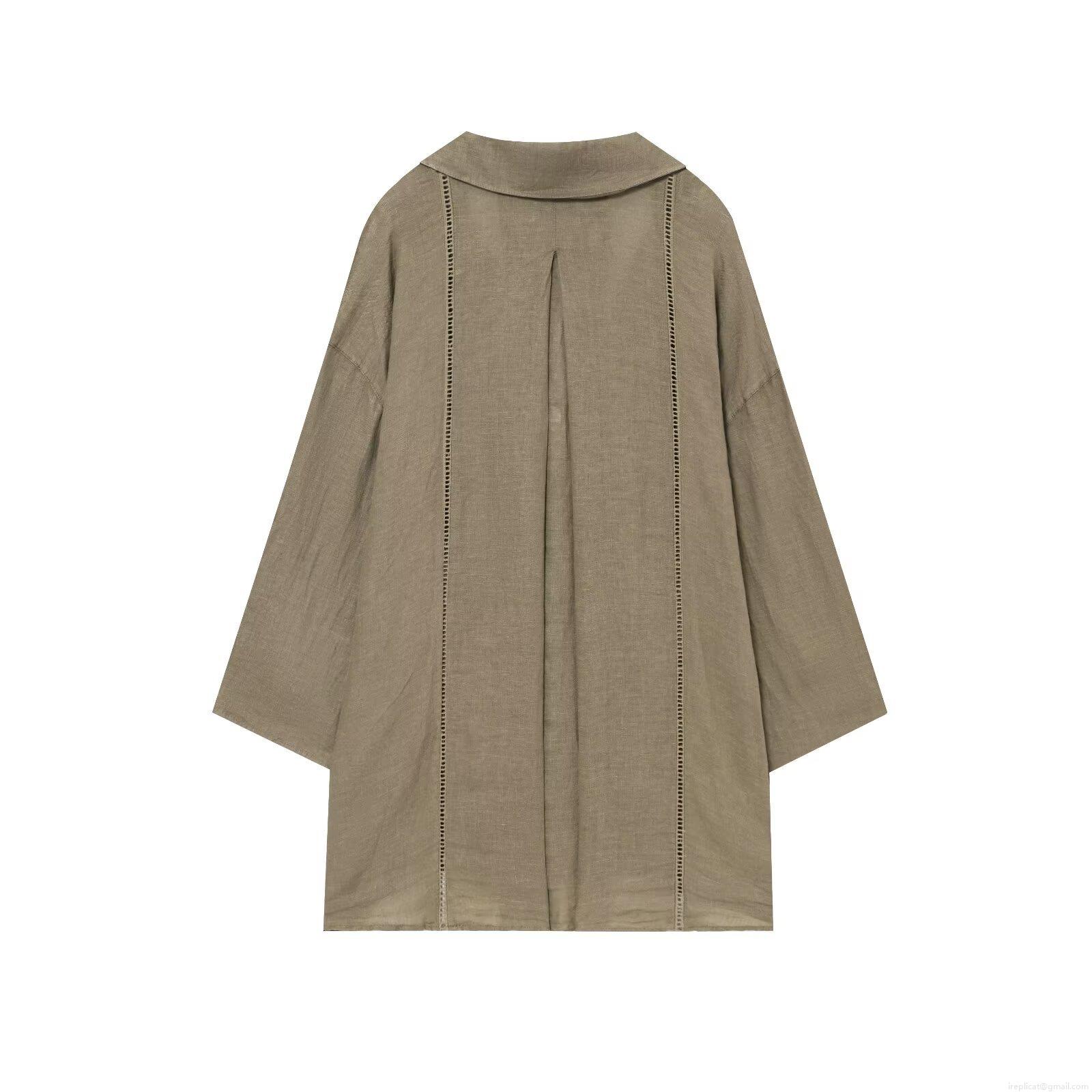 • Women's Casual Linen Cotton Shirt And Wide Leg Pants Set V Neck Long Sleeve Blouse Drawstring Loose Trousers With Hollow Out Embroidery Detail For Summer Women