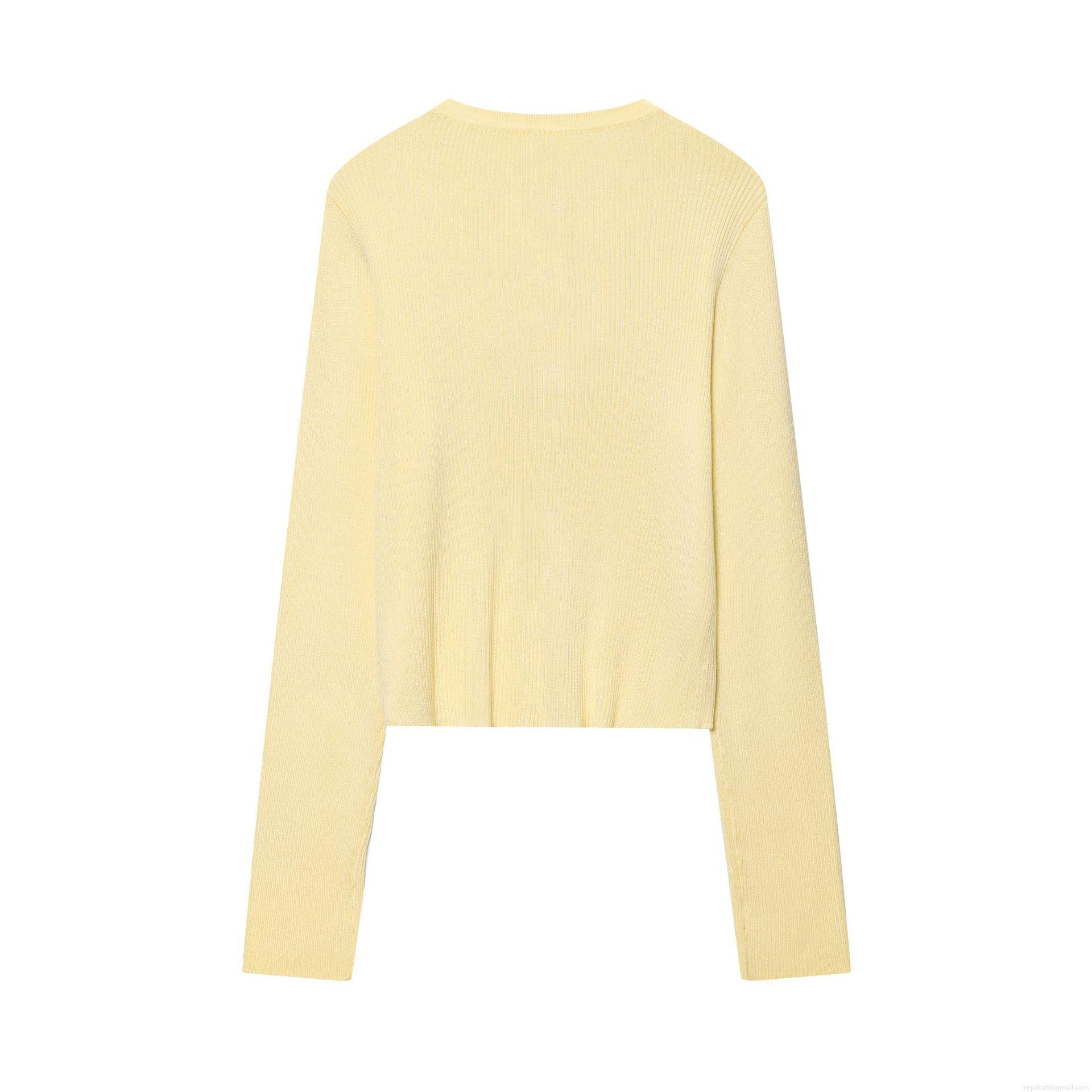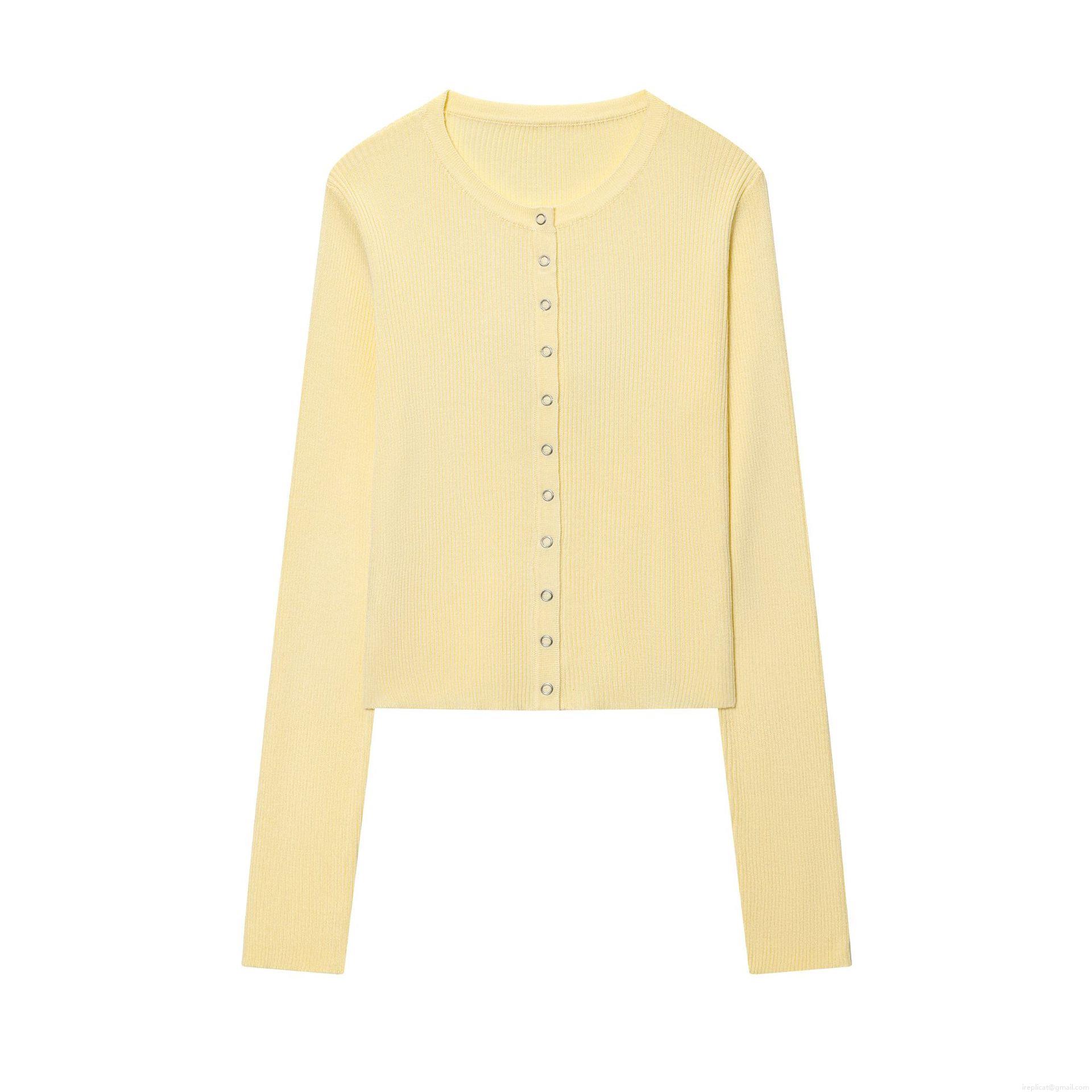 Solid Color, Ribbed Knit, Serrated Wavy Edge, Single-breasted Buttons