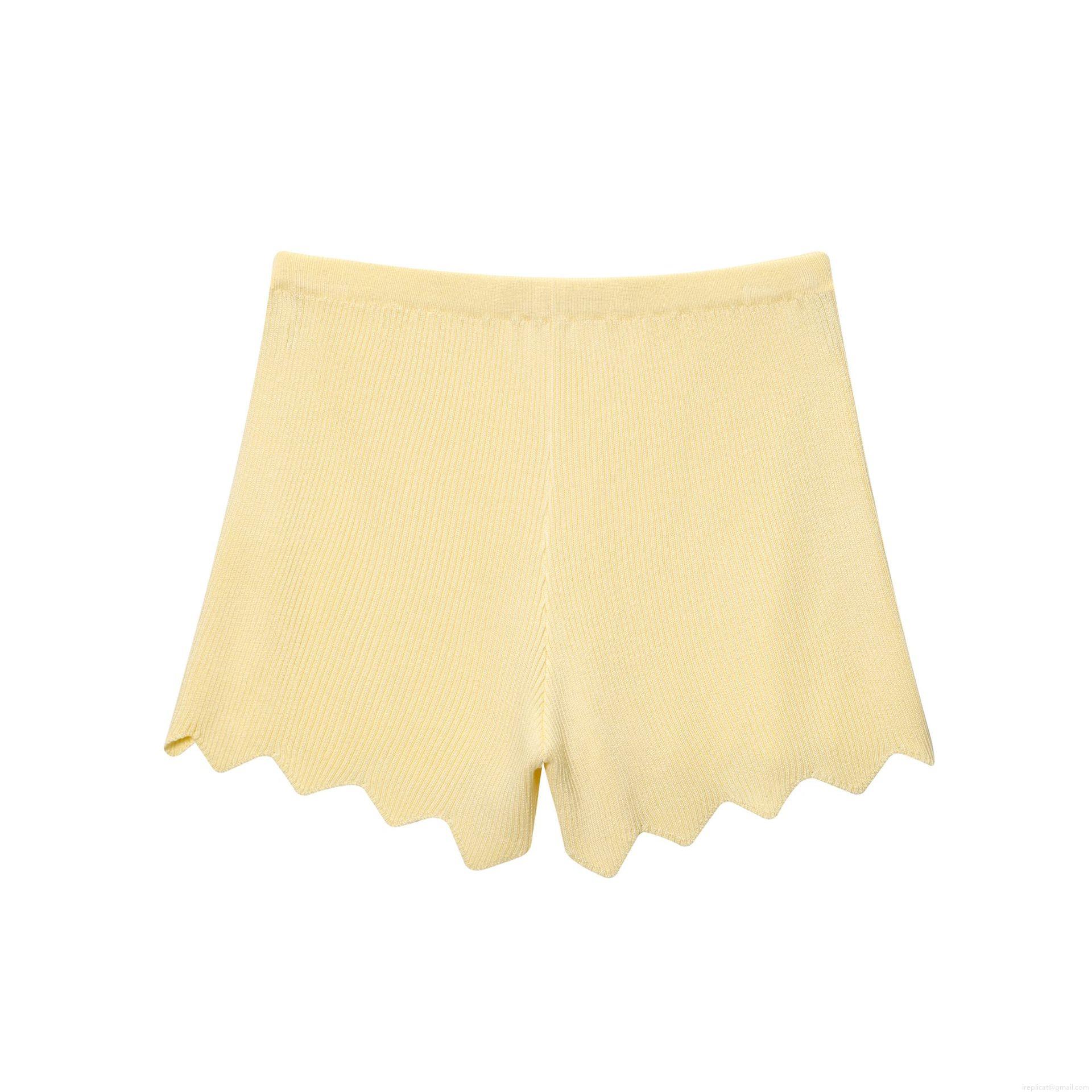 • Women's Casual Ribbed Knit 2 Piece Set Long Sleeve Button Down Cardigan And Scalloped Edge Shorts Solid Color Polyester Lounge Outfits For Women Streetwear