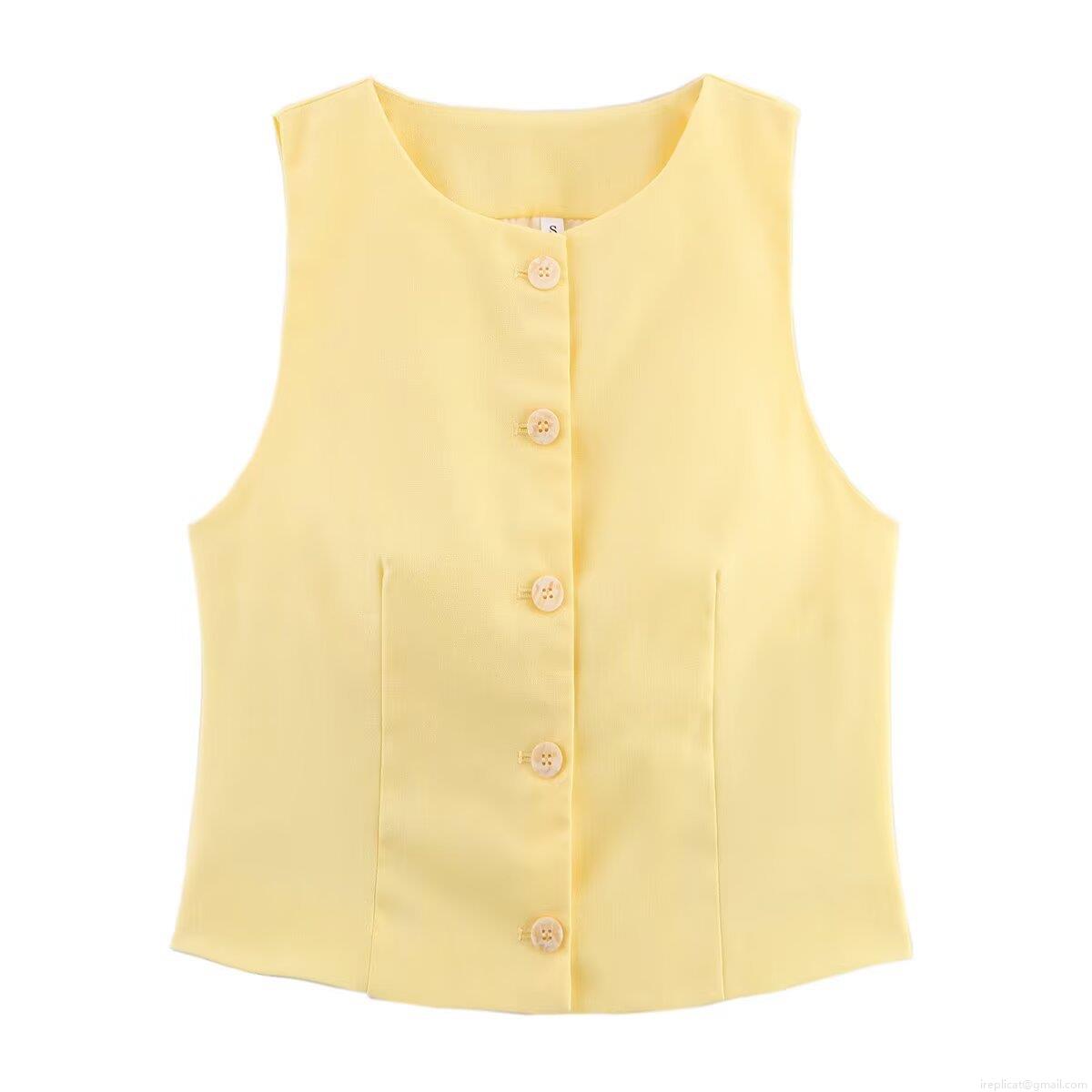 • Women's Casual Sleeveless Vest And Shorts Set Solid Color Round Neck Button Up Two Piece Outfits Summer Streetwear Waistcoat Short Pants Suit