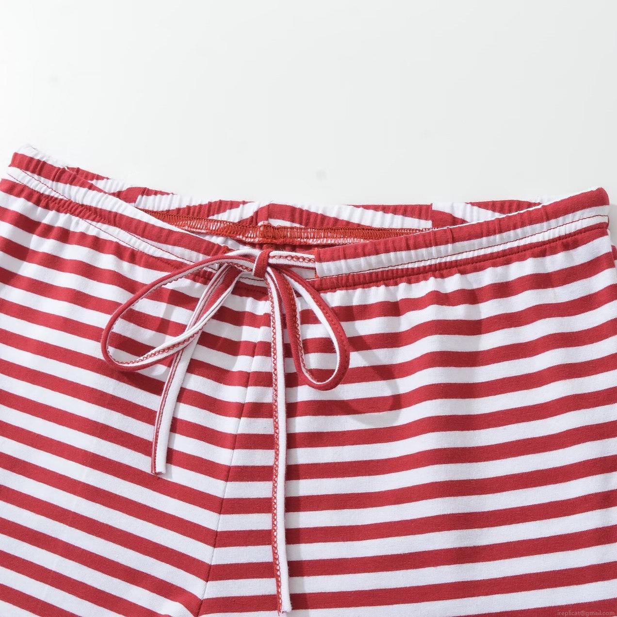 • Women's Casual Striped Long Sleeve T-Shirt And Drawstring Shorts Two Piece Set Cotton Blend Comfortable Loungewear Home Wear