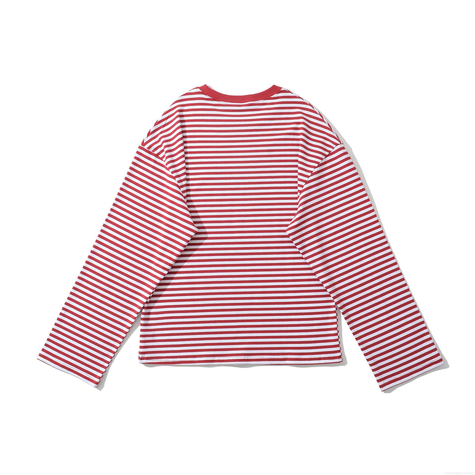 Women's Casual Striped Long Sleeve T-Shirt And Drawstring Shorts Two Piece Set Cotton Blend Comfortable Loungewear Home Wear