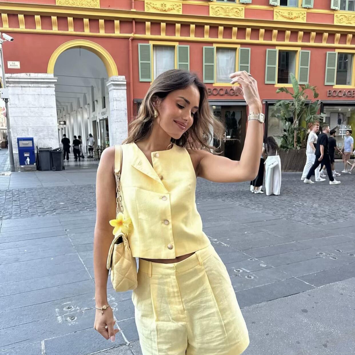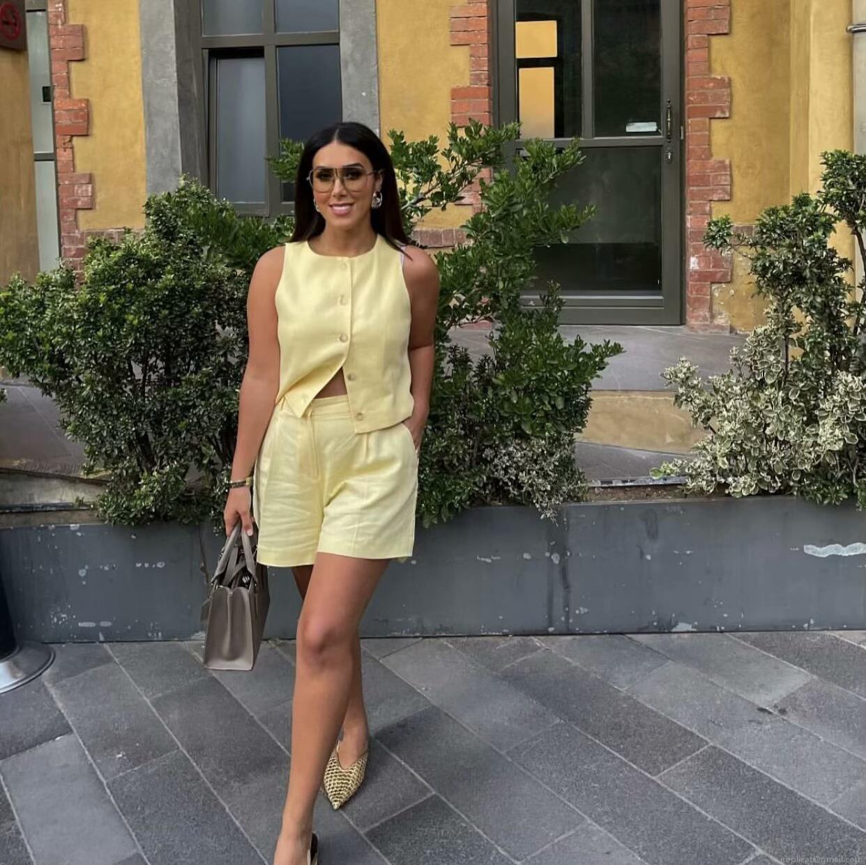 • Women's Casual Summer Two-Piece Set Sleeveless Button Down Vest Top And High Waisted Shorts Solid Color Fashion Streetwear Polyester Beach Outfit
