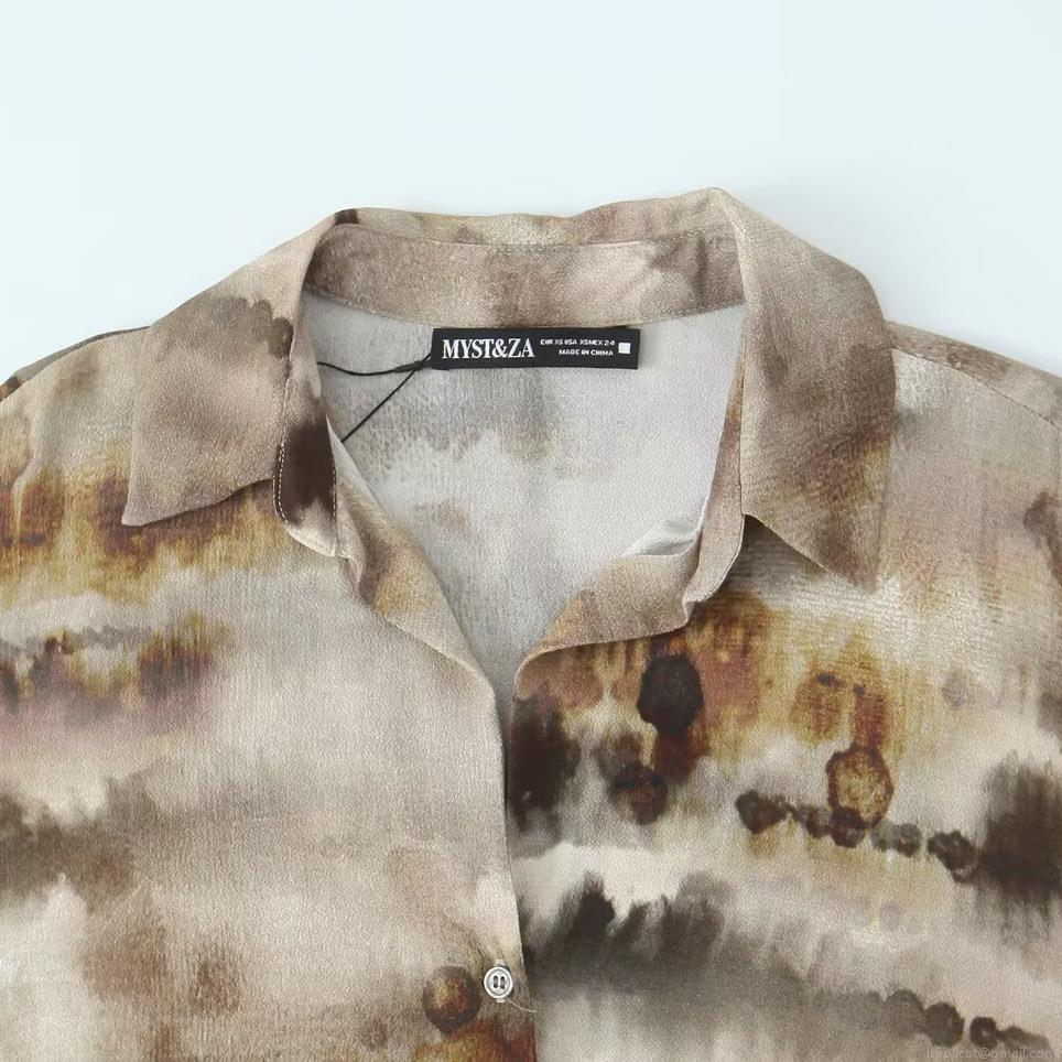 • Women's Casual Tie-Dye Ink Marble Print 2-Piece Set Long Sleeve Button Up Shirt And Wide Leg Drawstring Trousers Loose Relaxed Fit Summer Autumn Outfits